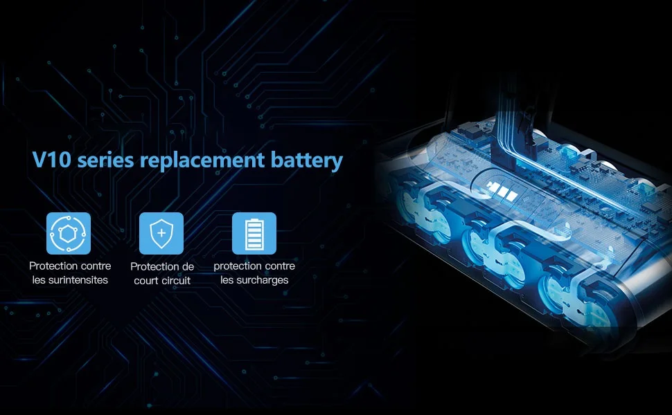 【ВЫСОКАЯ ЕМКОСТЬ 6,0 Ач 】 Емкость 6000 мАч/литий-ионный аккумулятор/напряжение 25,2 В. Аккумулятор For Dyson V10 можно заряжать с помощью оригинального быстрого зарядного устройства V10 примерно за 2,8 часа. Пылесос Максимальный режим: 3 минуты, нормальный режим: 30 минут. Никаких эффектов памяти. Высокая емкость вашего пылесоса Dyson, чтобы работать дольше.