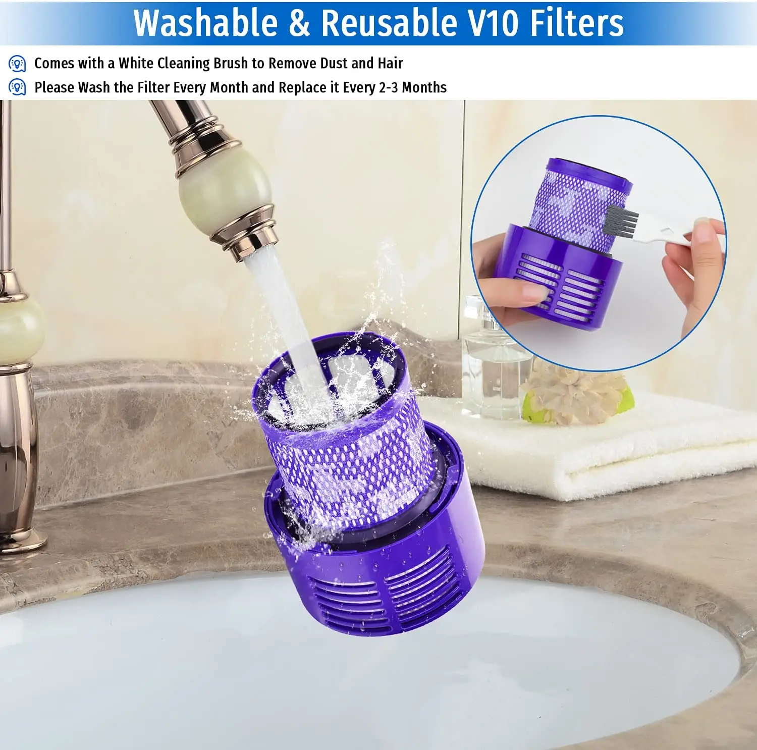 【ПРОСТОТА УСТАНОВКИ 】 Индикатор заряда батареи на 3 отдельных светодиодах показывает оставшийся заряд. Этот Аккумулятор для Dyson SV12 поставляется с бесплатным широко совместимым постфильтром, который можно полностью стирать и использовать повторно для увеличения срока службы и лучшей фильтрации.