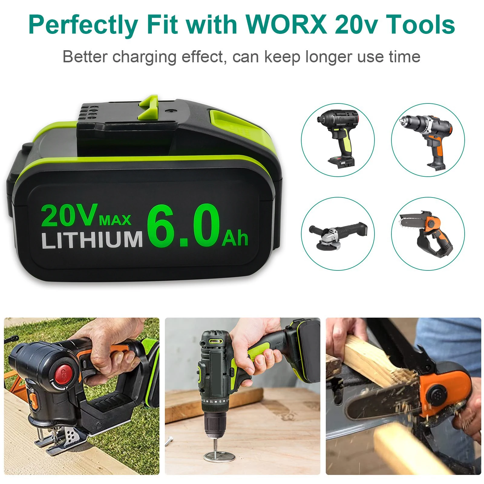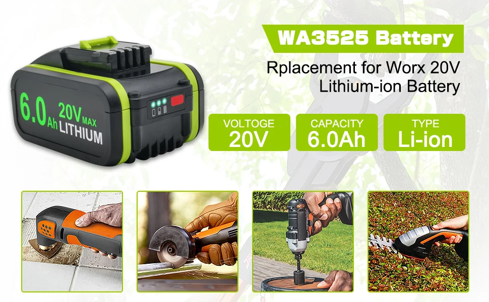 2、For WORX battery 20 V for all garden and electrical devices from For WORX. Can be used for cordless lawnmowers, cordless drills, cordless angle grinders, cordless grass trimmers and much more