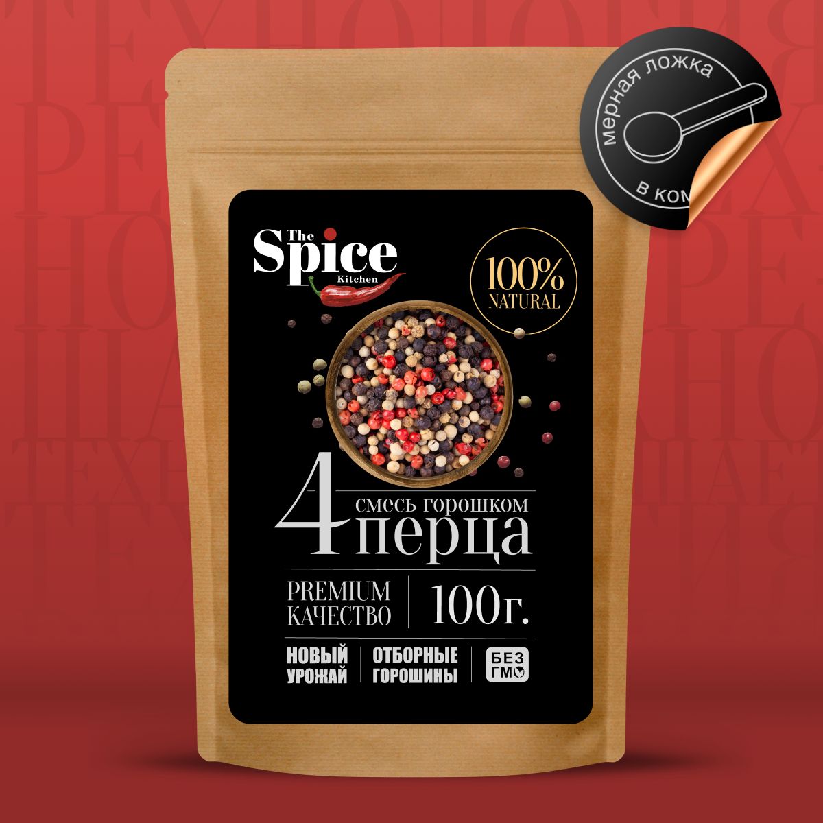 Смесь 4 перца горошком 100 грамм, натуральная универсальная приправа (специя) для приготовления первых вторых тушеных мясных и рыбных блюд супов салатов риса консервирования заготовок мельницы