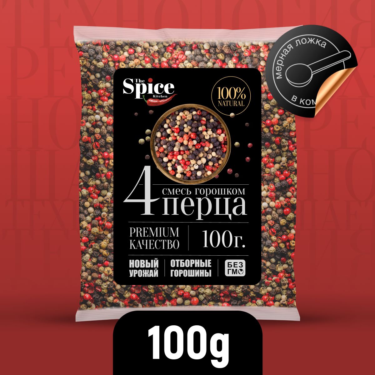 Смесь 4 перца горошком 100 грамм, натуральная универсальная приправа (специя) для приготовления первых вторых тушеных мясных и рыбных блюд супов салатов риса консервирования заготовок мельницы