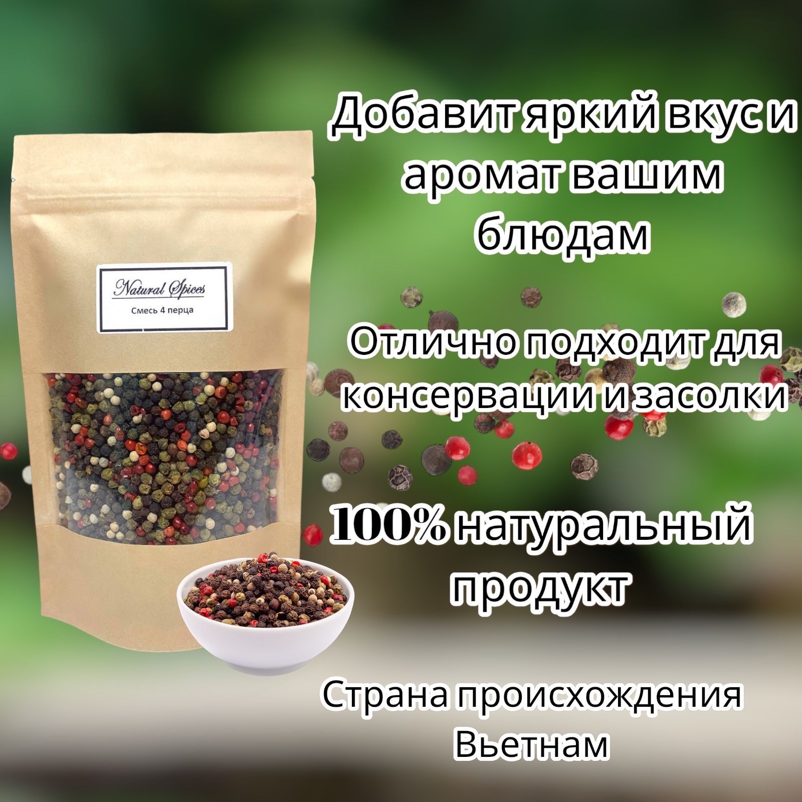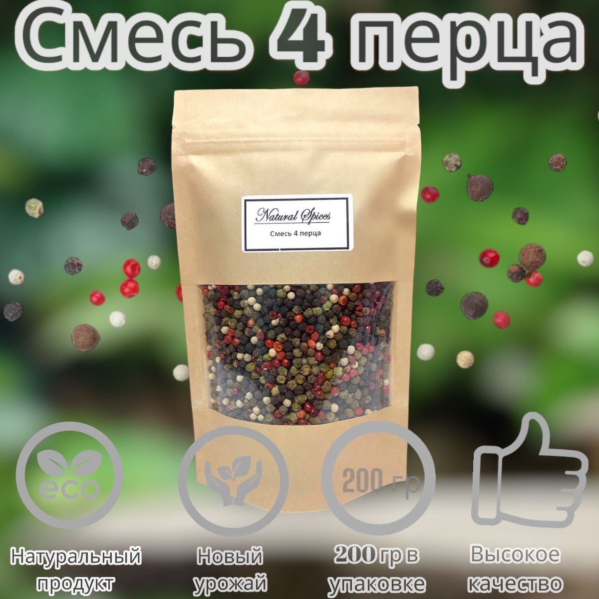 Описание: Смесь четырех перцев горошком – популярная приправа для самых различных видов блюд. Она придает продуктам пикантный вкус и пряный аромат. Все это наиболее распространенные виды перцев, каждый из которых обладает своим особым ароматом.Горошины душистого и черного перца придают пище остроту, белого — изысканность, розового — легкую сладость, зеленого — яркий аромат.