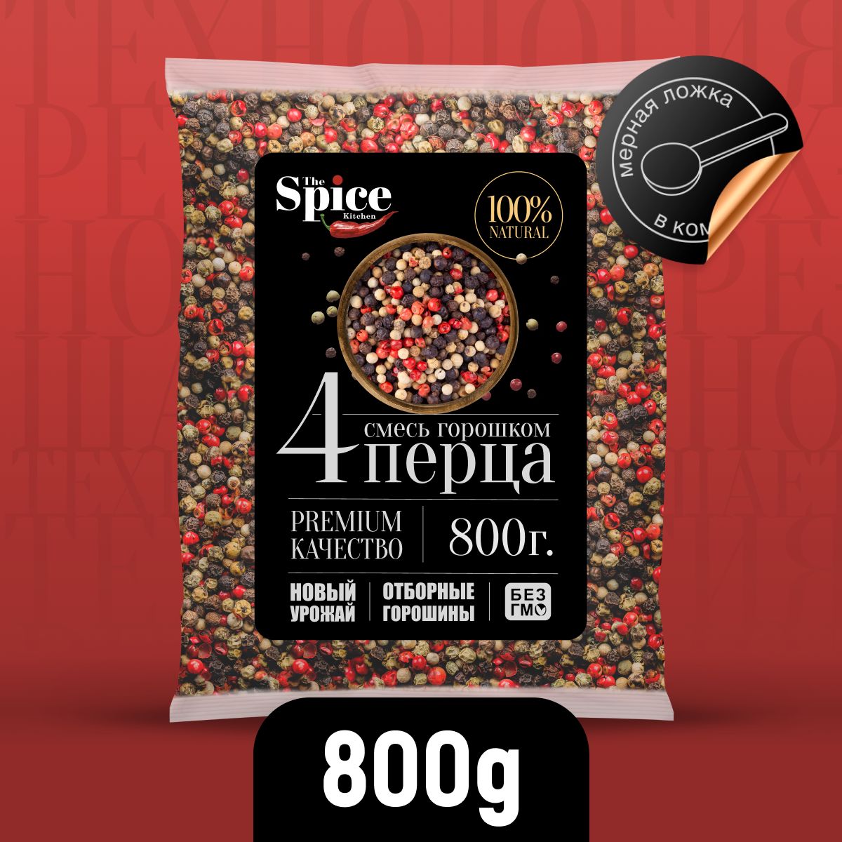 Смесь 4 перца горошком 800 грамм, натуральная универсальная приправа (специя) для приготовления первых вторых тушеных мясных и рыбных блюд супов салатов риса консервирования заготовок мельницы