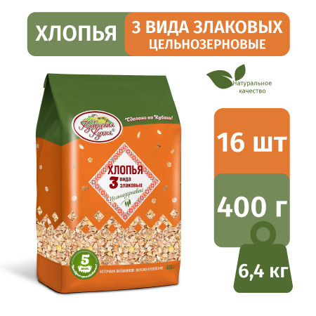Смесь цельнозерновых хлопьев 3 вида злаковых "Кубанская кухня" 400г., 16 шт
