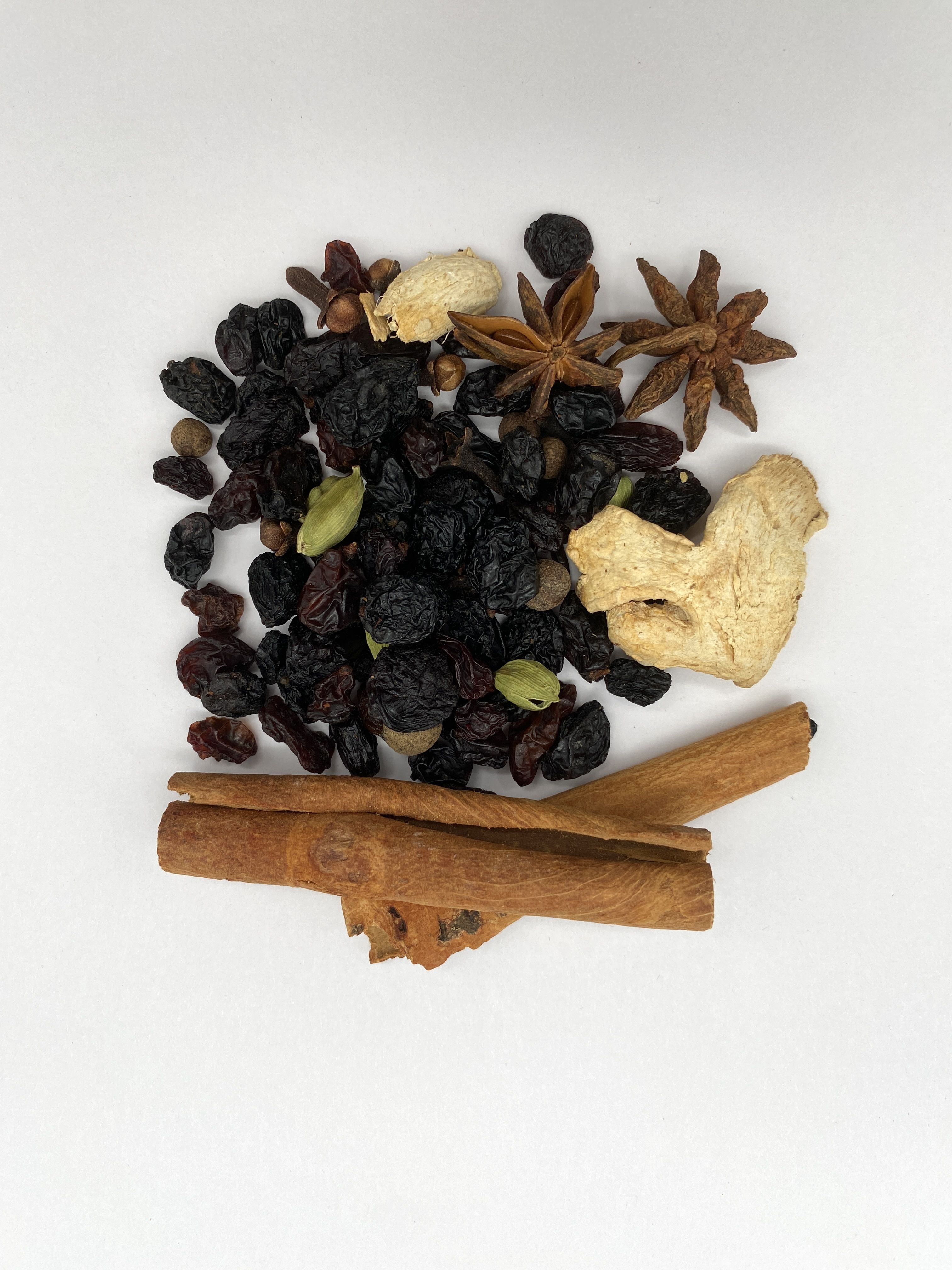 Изюм, имбирь, кардамон, корица, бадьян, гвоздика, перец душистый.