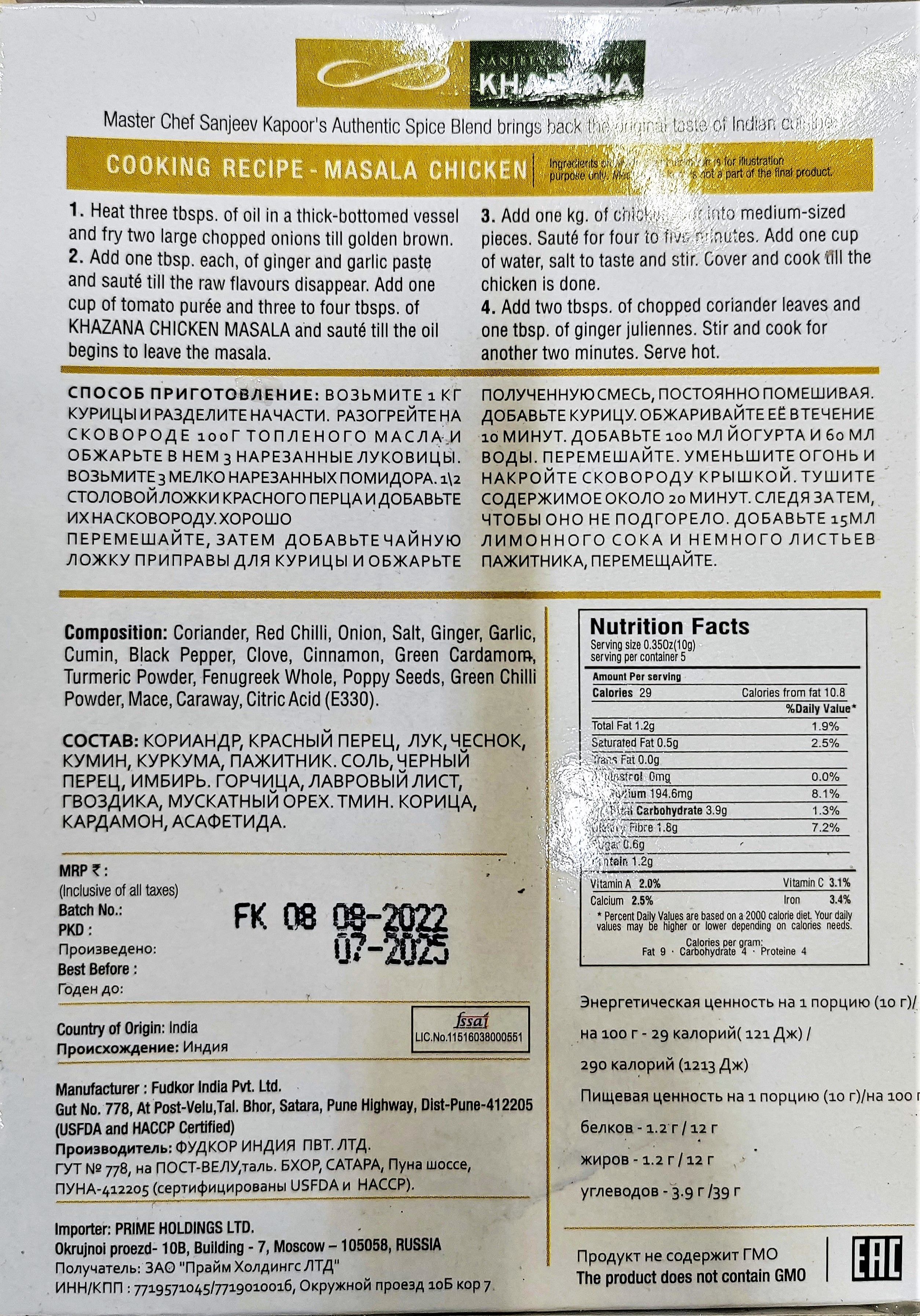 Описание: Премиальная индийская смесь специй масала для курицы Khazana Meat Masala.