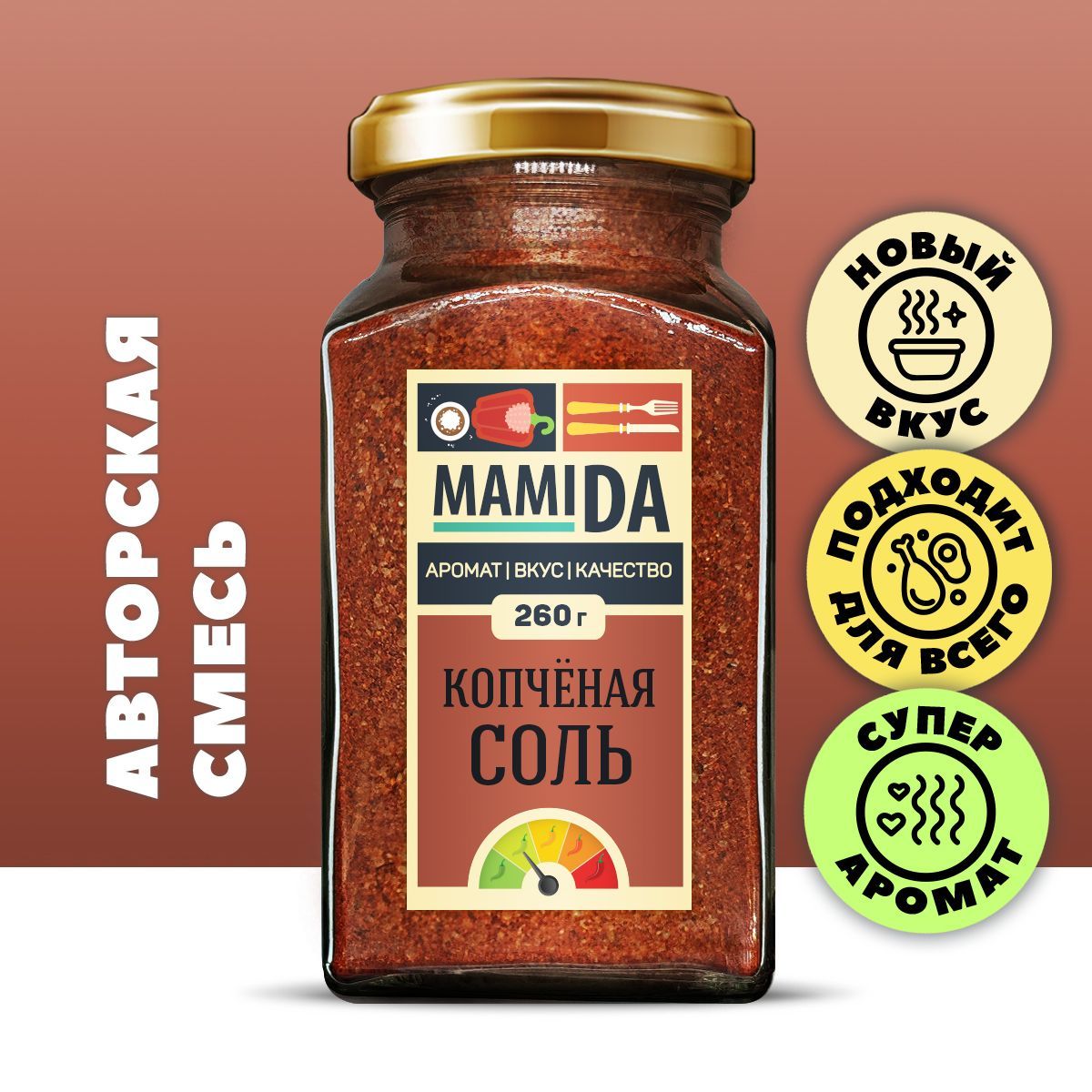 Смесь копченой паприки с солью, специи приправы и пряности вкусы мира МамиДА, 260г