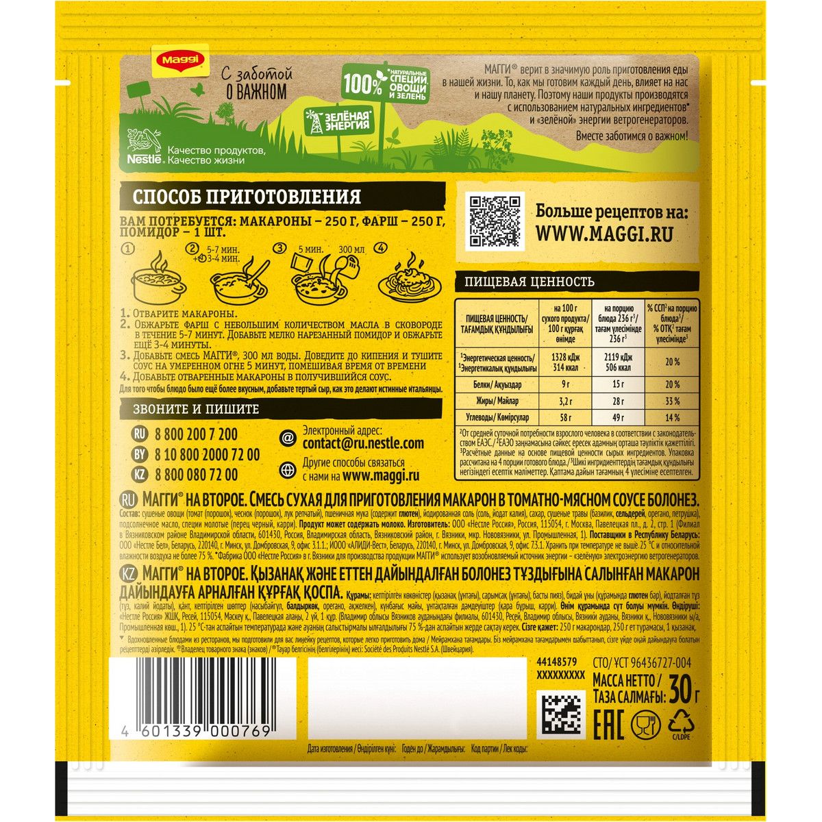 Смесь Магги На Второе сухая для приготовления макарон в томатно-мясном соусе Болонез, 30 г