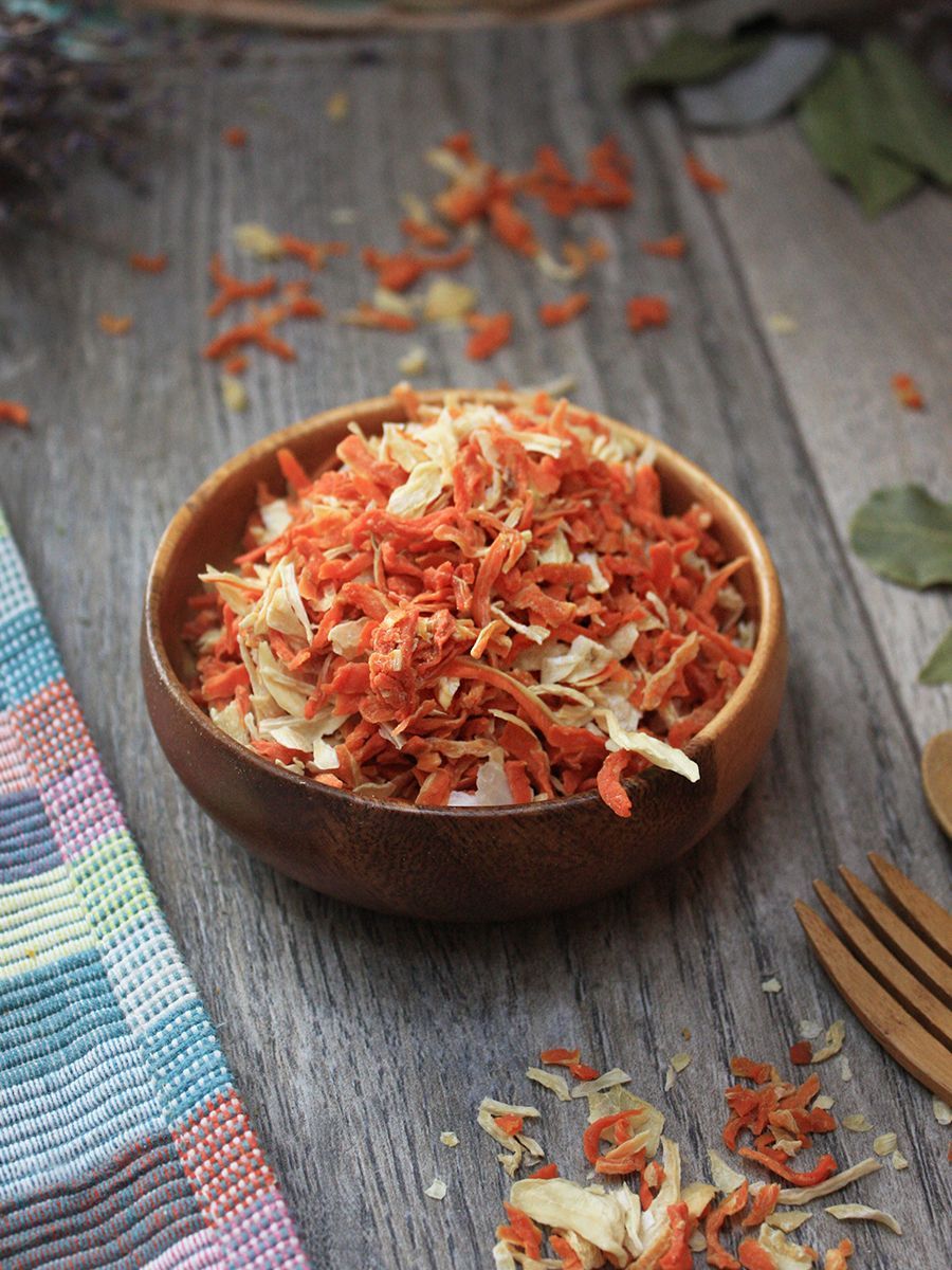 Смесь моркови и лука добавляют в супы, борщи, рагу, мясные и рыбные блюда, а также блюда из птицы. Смесь моркови и лука (готовая заправка) придаёт блюдам насыщенный вкус и аппетитный золотистый цвет. В зависимости от вкусовых предпочтений в готовую заправку можно добавить томатные хлопья, болгарский перец (паприку зеленую или красную), зелень или чеснок.