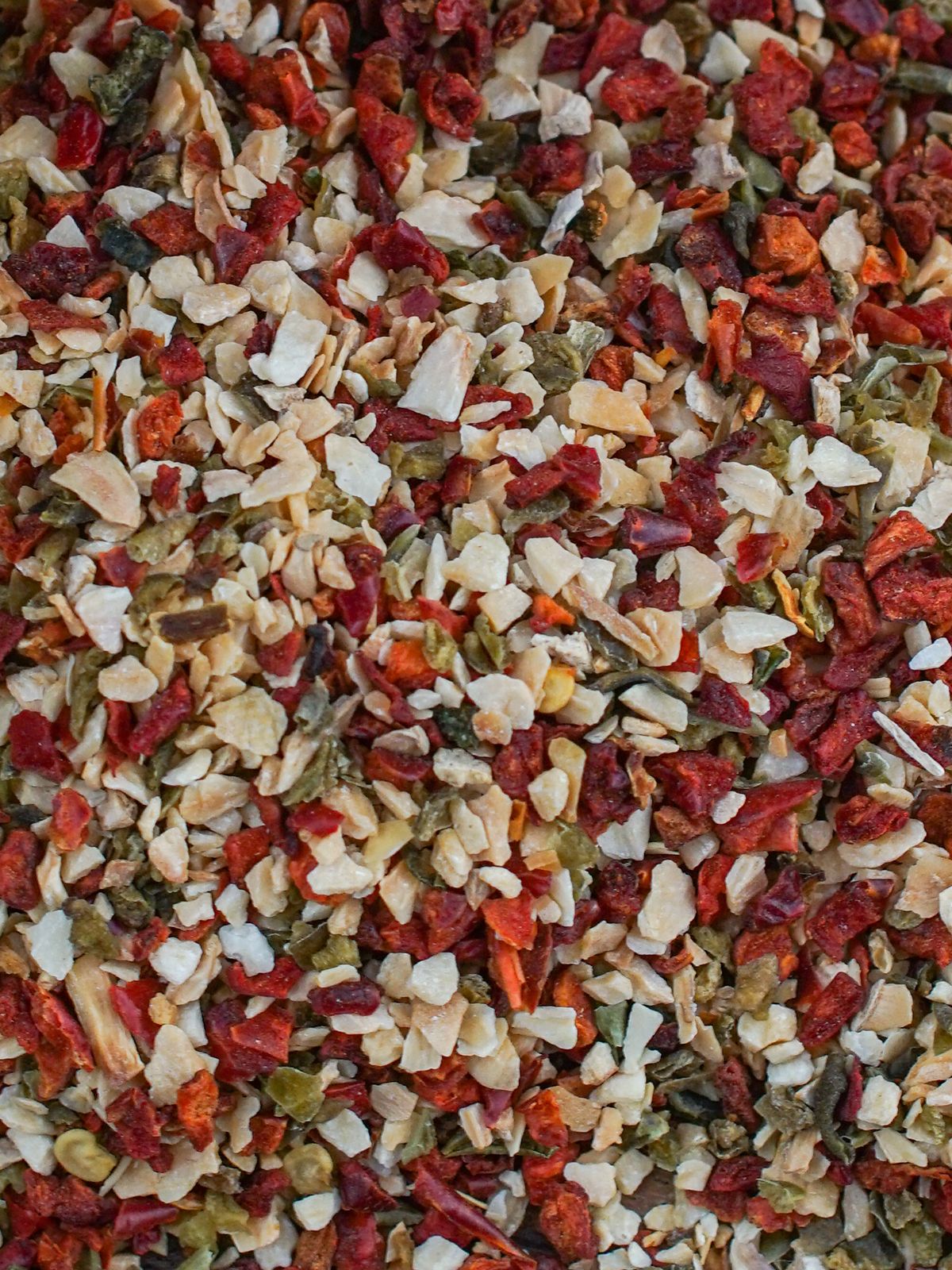 Описание: Смесь пряностей и специй для мяса, курицы и овощей - это ароматная приправа, которая является натуральным продуктом. В ней нет соли и глутамата натрия, представляет собой продукт премиум качества. Великолепно сочетается с другими специями: черный перец, смесь перцев, куркума, чеснок и сушеная морковь. Приправа для мяса отлично подходит для приготовления любых мясных и овощных блюд, свинины, говядины, курицы, шашлыка, соусов и маринадов, а также используется для запекания в духовке, для тушения, гриля, фарша и котлет, а также для приготовления бульонов и супов. Прекрасно гармонирует с овощами. Набор специй придает блюдам особый вкус, ее часто добавляют в гарниры. Обсыпка подходит для приготовления буженины, жаркого, блюд из картофеля. Декоративная смесь приправ придаст вашим блюдам яркий острый насыщенный вкус. Предназначена для украшения колбас и копченостей, для первых и вторых блюд, соусов. Незаменима для украшения мясных рулетов, колбас для жарки, зельцев и студней. Смесь простых вкусов может применяться и в первых блюдах, и в качестве обсыпки или как дополнительный ингредиент панировки при жарке мяса, рыбы, птицы.