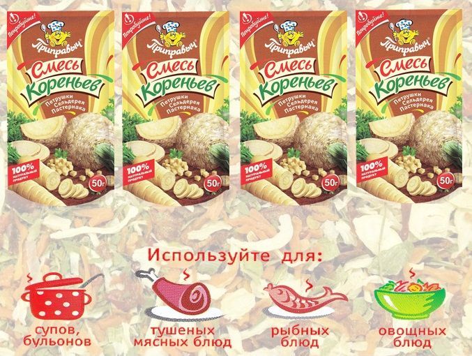 Смесь сушеных кореньев петрушки, сельдерея и пастернака. 4 шт. по 50 гр. Приправыч.