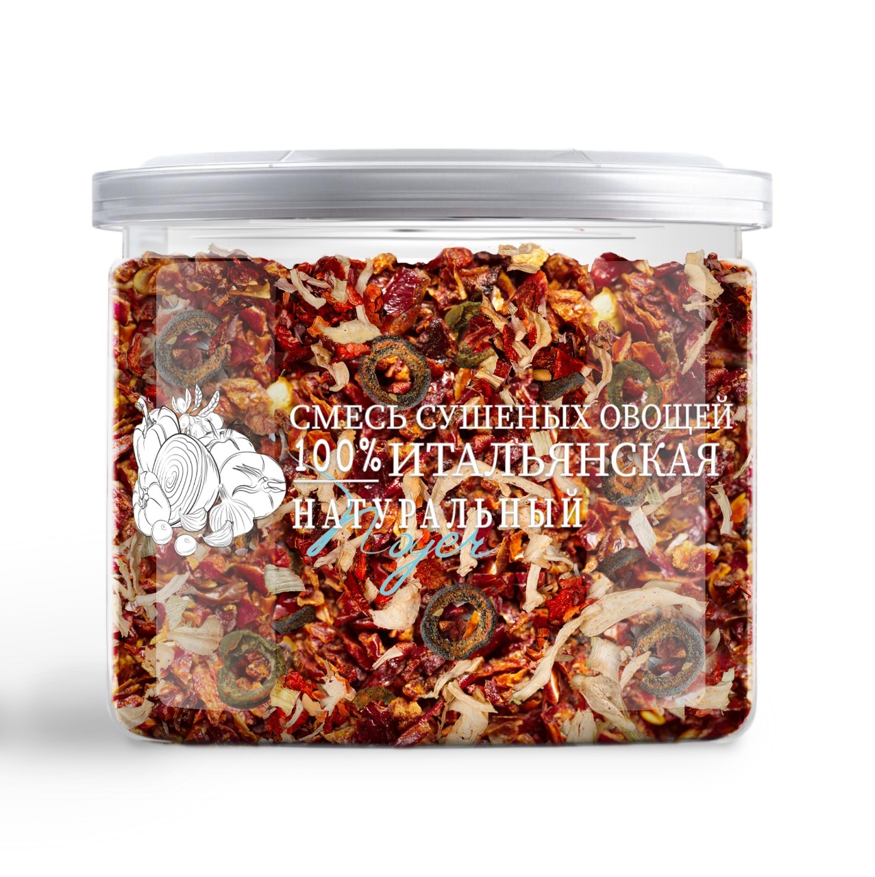 Смесь сушеных овощей Итальянская (томат, лук репчатый, паприка, чеснок, маслины, оливки, паприка копченая) Приправа Универсальная овощная NOYER 200 гр.