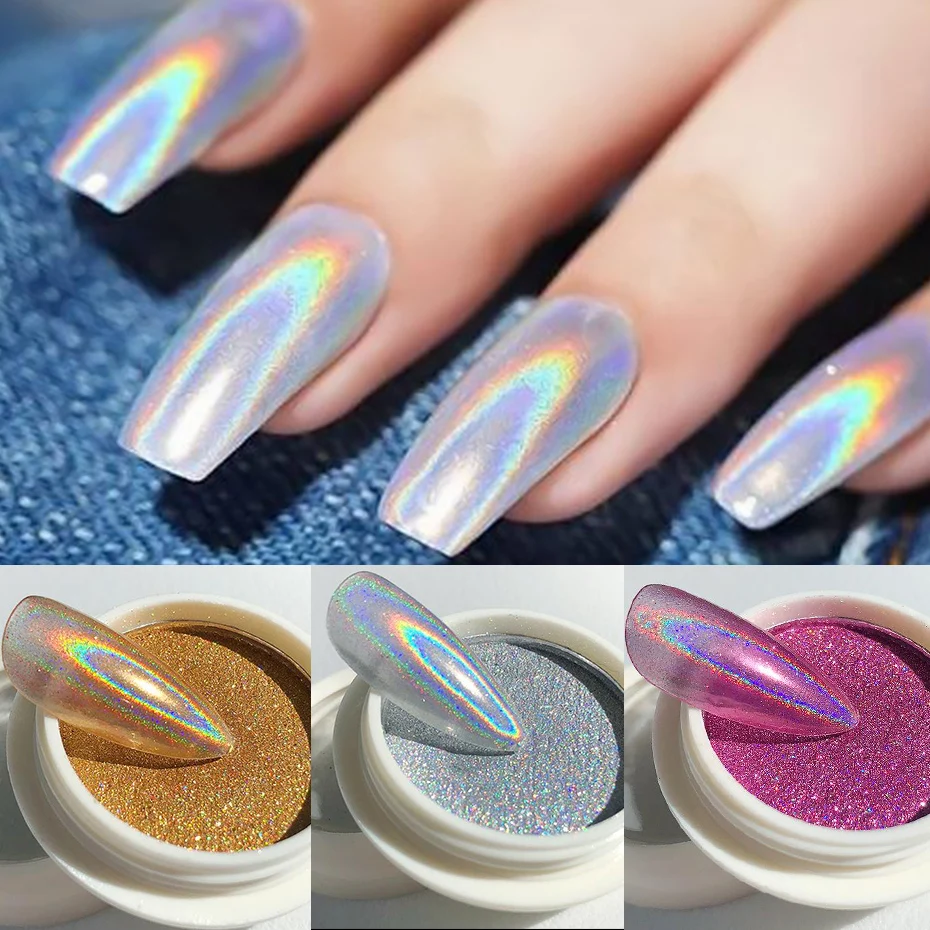 Use For Dazzling Laser Silver Glitter Chrome For Nails