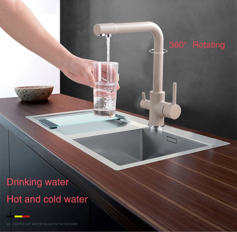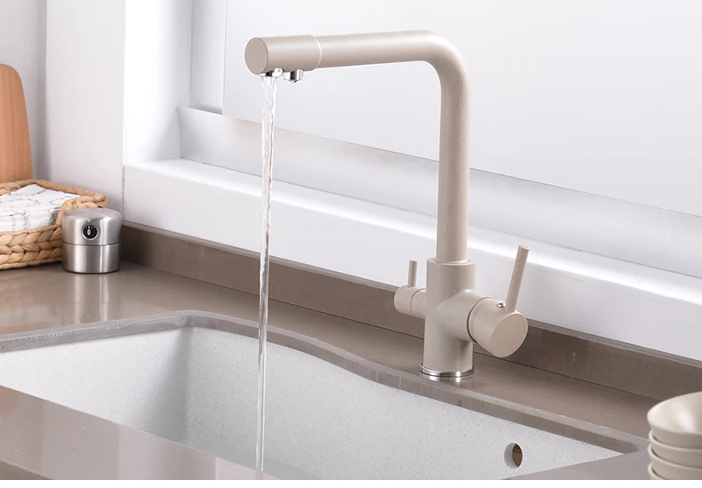 смеситель для кухни Смеситель кухонный латунный с очистителем, кран с двойным распылителем для питьевой фильтрованной воды, крепление на раковину смеситель на кухню кран для фильтра воды