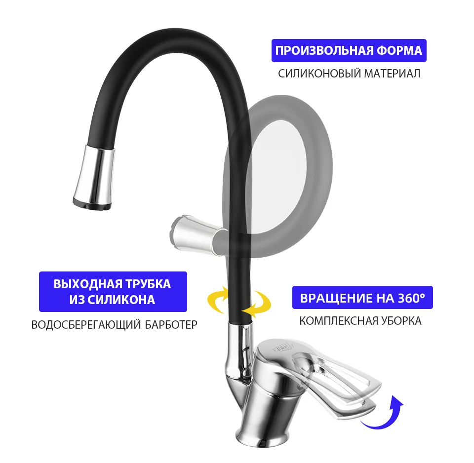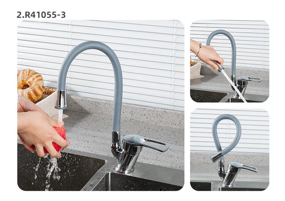 Смеситель для кухонной раковины с силиконовым носиком FRUD, доступно несколько цветов, регулируемое вращение в любом направлении