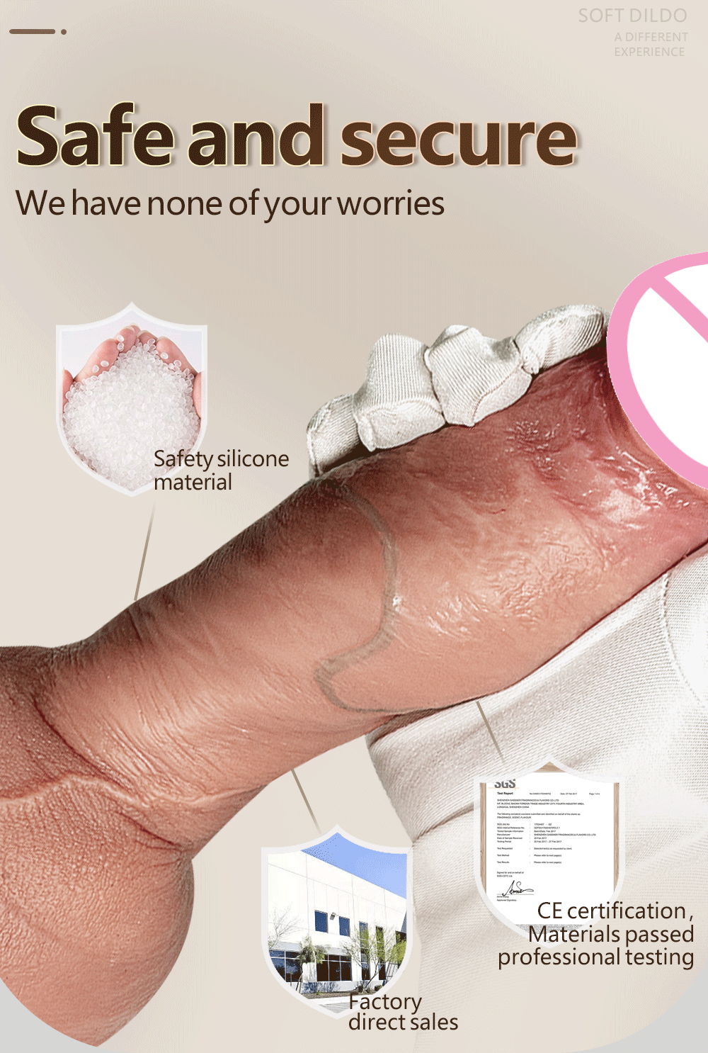 2. Наш фаллоимитатор на присоске изготовлен из медицинского силиконового материала, нетоксичный, без запаха. 100% водонепроницаемый материал гарантирует, что вы можете использовать его во влажной среде.