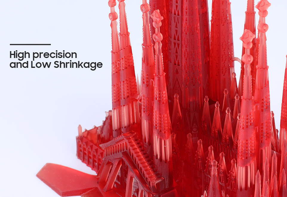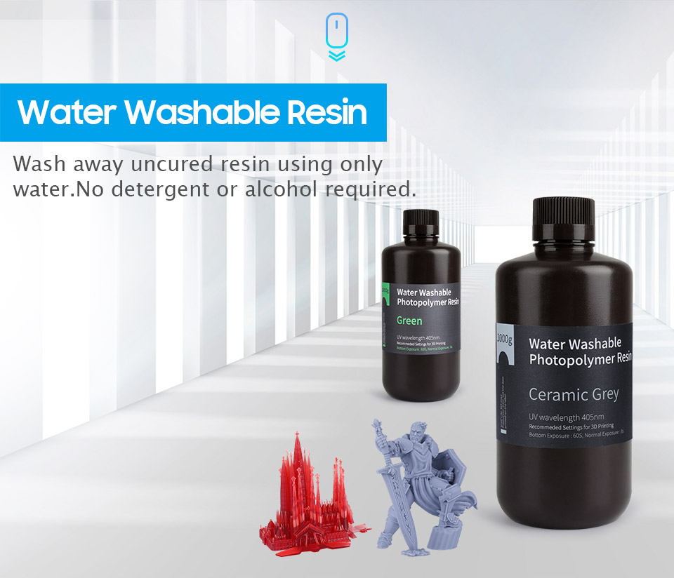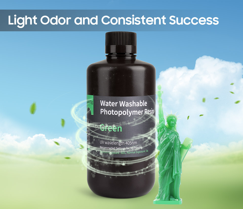 С водомоющейся смолой вам больше не нужно использовать дорогие и опасные растворители, такие как ацетон или спирт, для удаления излишков смолы на ваших 3D-отпечатках-просто промойте водой, что безопасно и бесплатно.