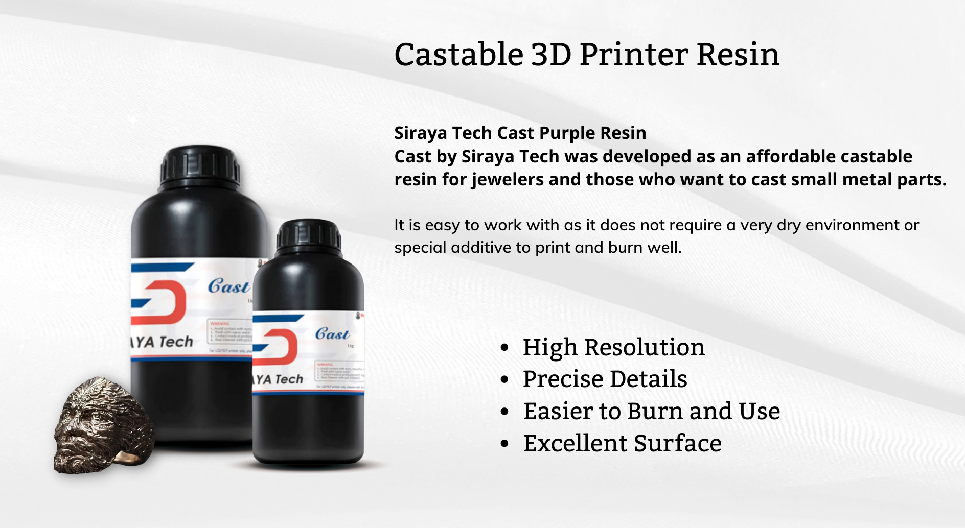 Смола для 3D-принтера Siraya Tech Cast с ЖК-дисплеем, УФ-отверждаемая смола с высоким разрешением для изготовления ювелирных изделий и металлических деталей (1 кг/500 г)