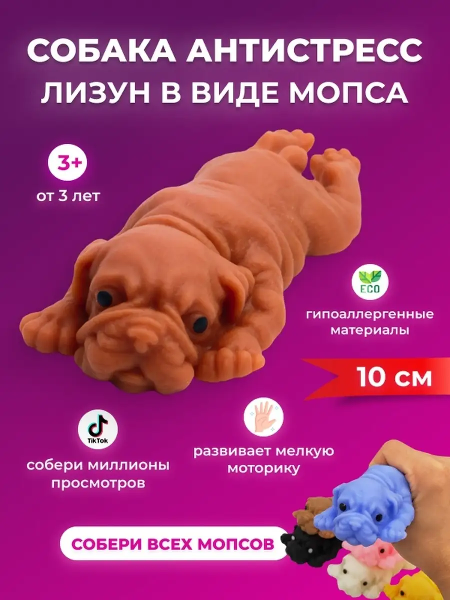Собака антистресс мопс лизун / 10 см.