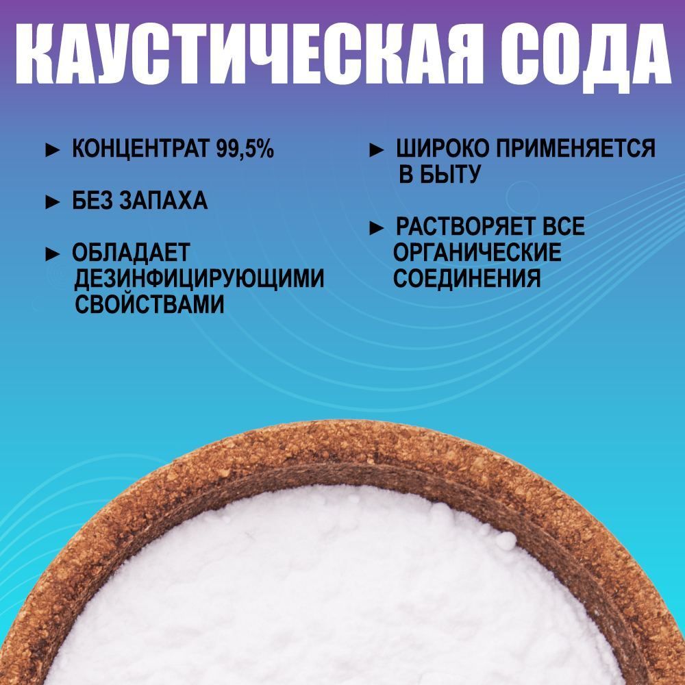 Сода каустическая (натр едкий гранулированный, каустик) 1000 г - средство для прочистки труб от засоров, чистка поверхностей