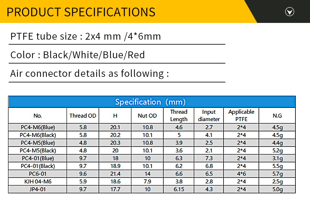 Название: пневматический прямой фитинг для 3D-принтера PC4-01/PC6-01/ PC4-M5/M6.