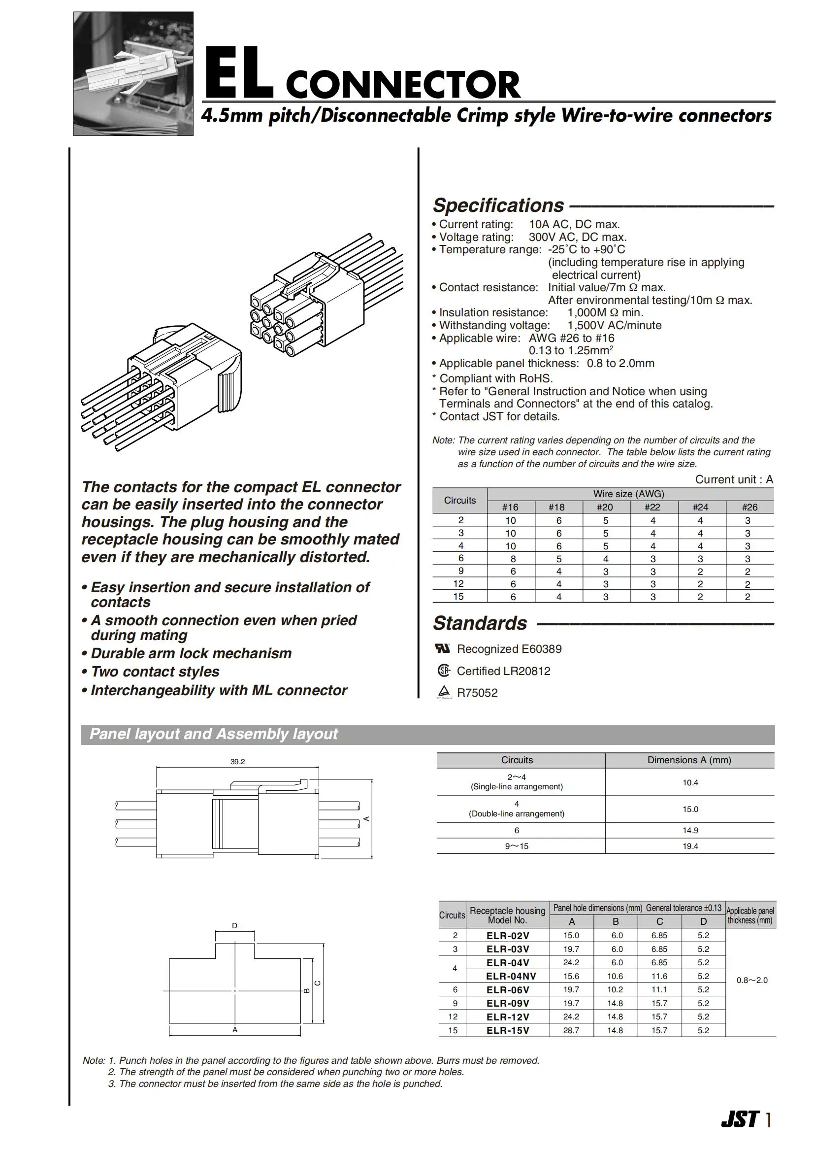 Соединители для проводов, обжимные, с блокирующим устройством, шаг 4,5 мм, стандартные, JST