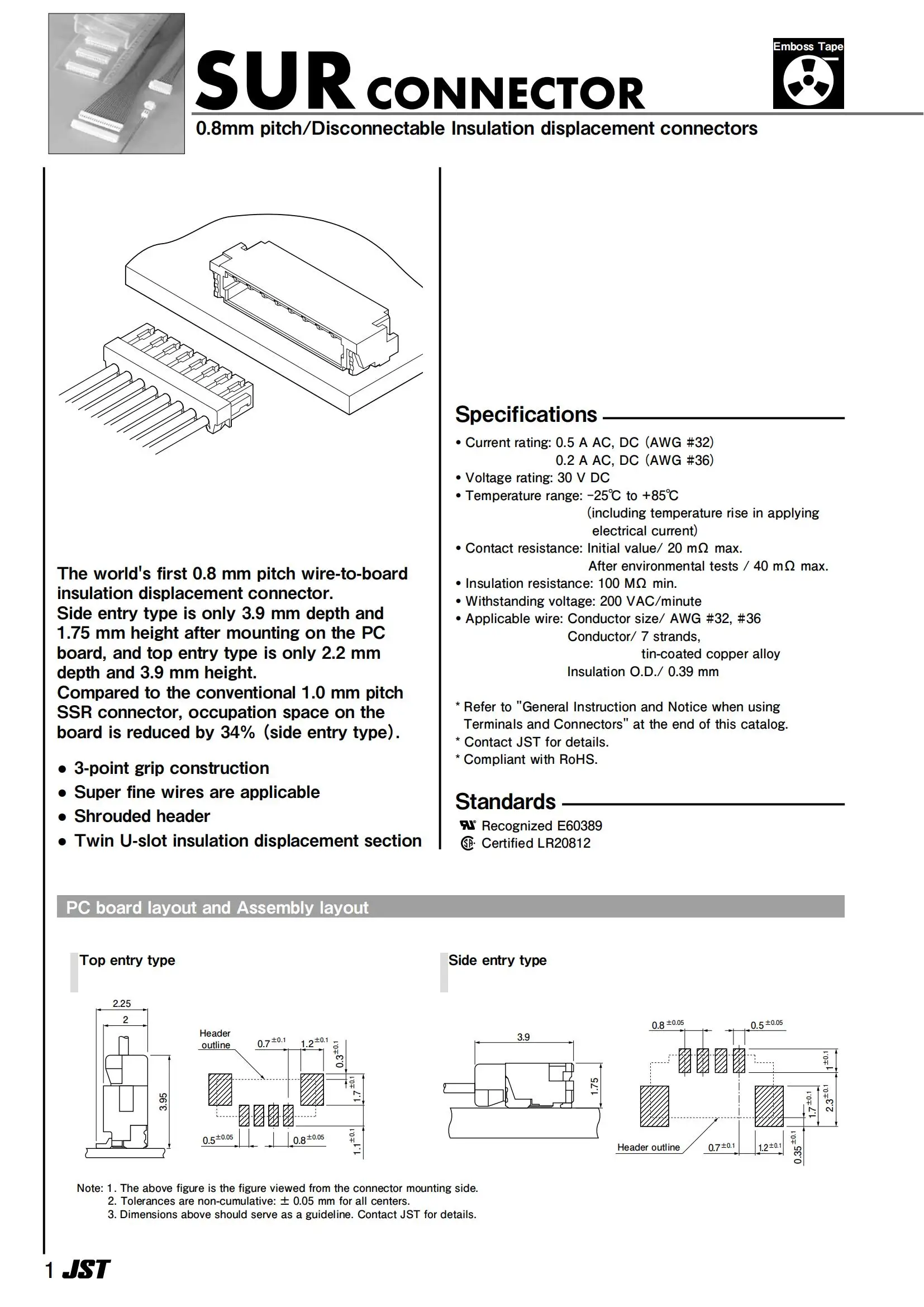 Соединители изоляционного смещения провода для платы, шаг 0,8 мм, фотосессия, JST