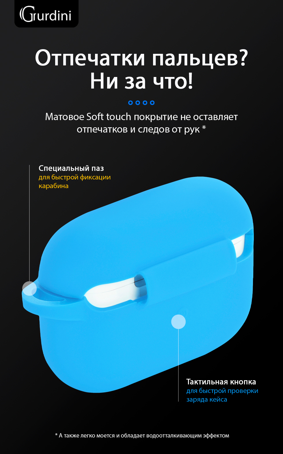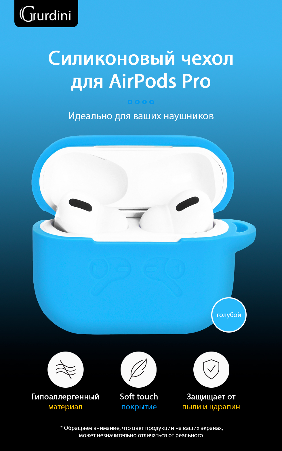 Описание: Чехол из качественного и тактильно приятного силикона для наушников Airpods Pro. Данный чехол надежно защищает корпус зарядного кейса от царапин и внешних воздействий, придавая ему индивидуальный внешний вид. В комплекте идет карабин с помощью которого можно прицепить наушники к сумке, брелку, ремню.