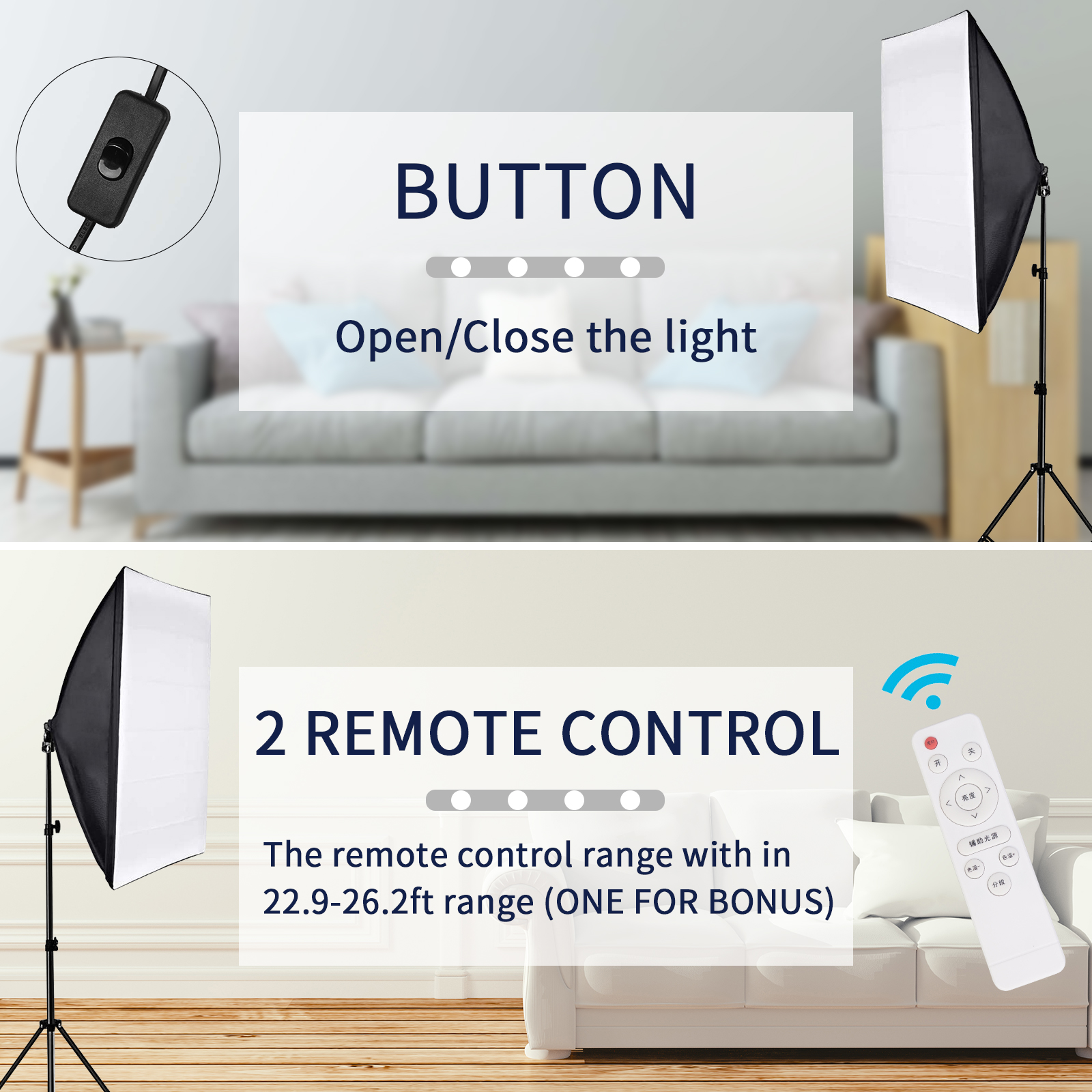 Наш комплект фотографического освещения софтбокса оснащен светодиодными энергосберегающими лампами и пультом дистанционного управления.