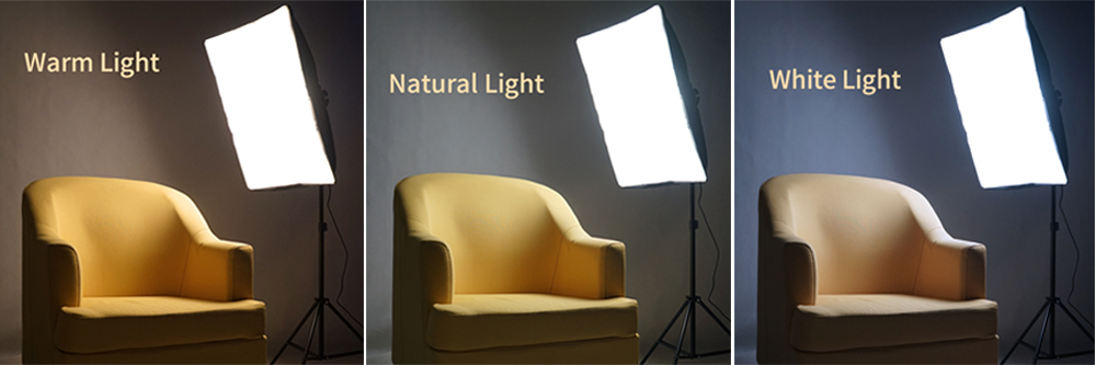 Регулируемый свет: по сравнению с традиционными лампами софтбокса, он дает вам более яркие, свободно заменяемые 3 цвета: теплый, белый, холодный.