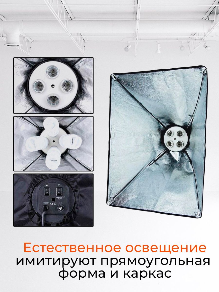 Софтбокс с держателем на 4 лампы для фото Snowman и оптимальным размером 50х70
