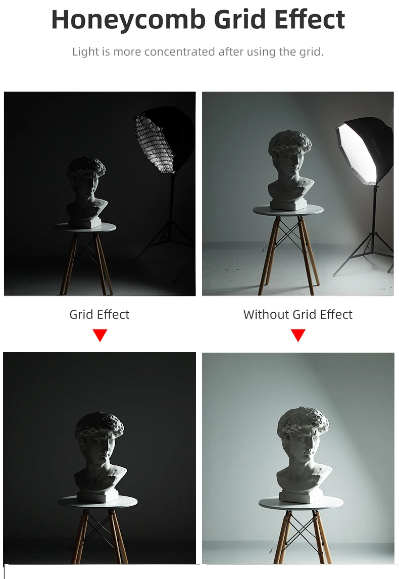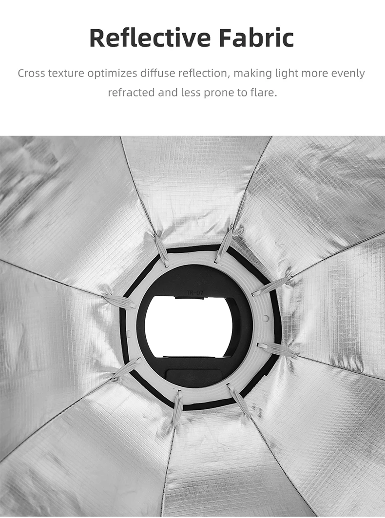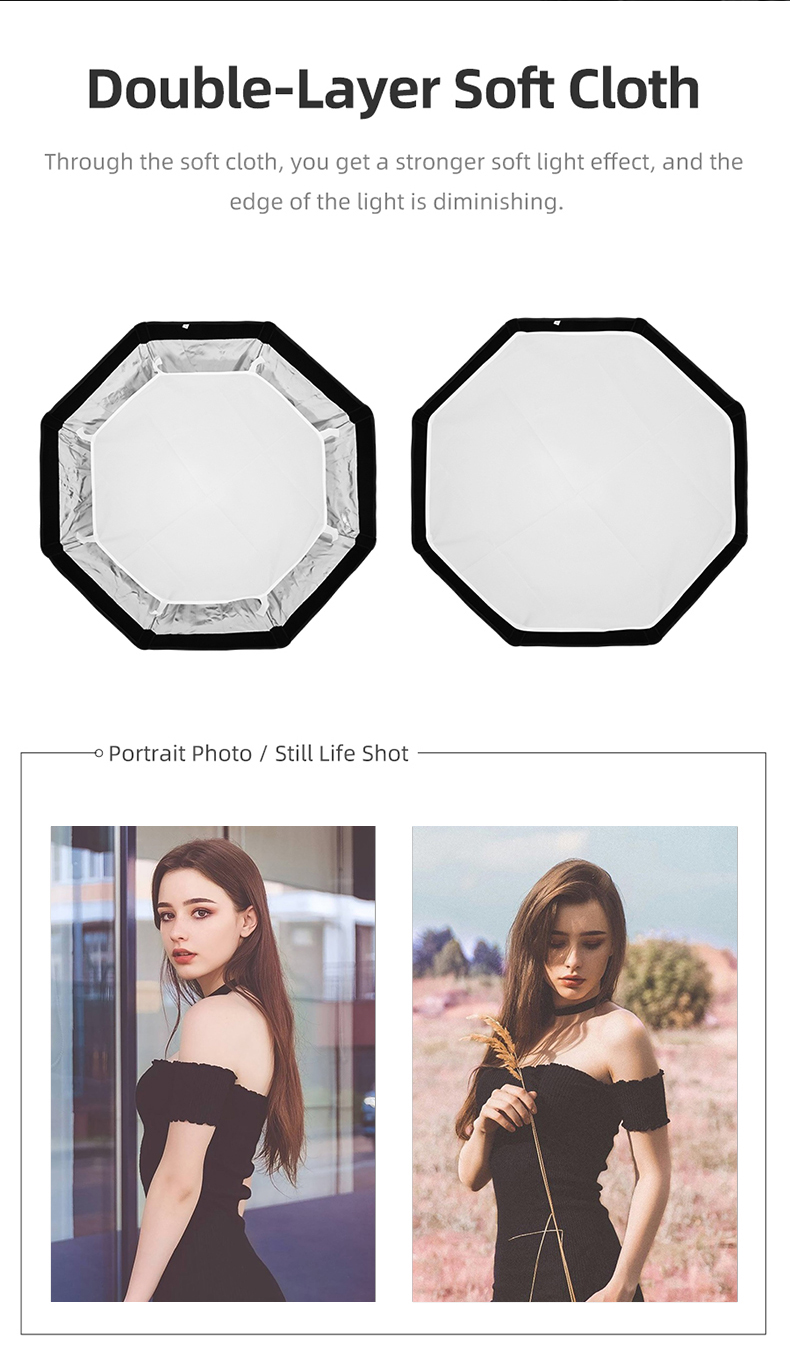 1. Внутри с отражающим серебром и поставляется с передним полупрозрачным диффузором, отлично подходит для speedlite, monolight, strobe или slave.