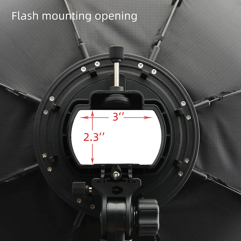 1. Внутри с отражающим серебром и поставляется с передним полупрозрачным диффузором, отлично подходит для speedlite, monolight, strobe или slave.