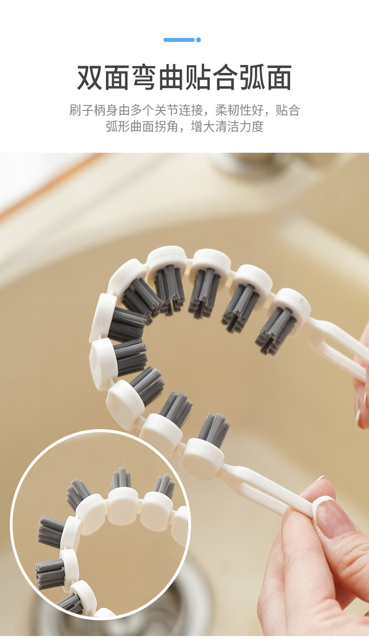 Согните щетку для зазоров краев и углов ванной комнаты, очистите мертвые углы, щетка твердой щетиной