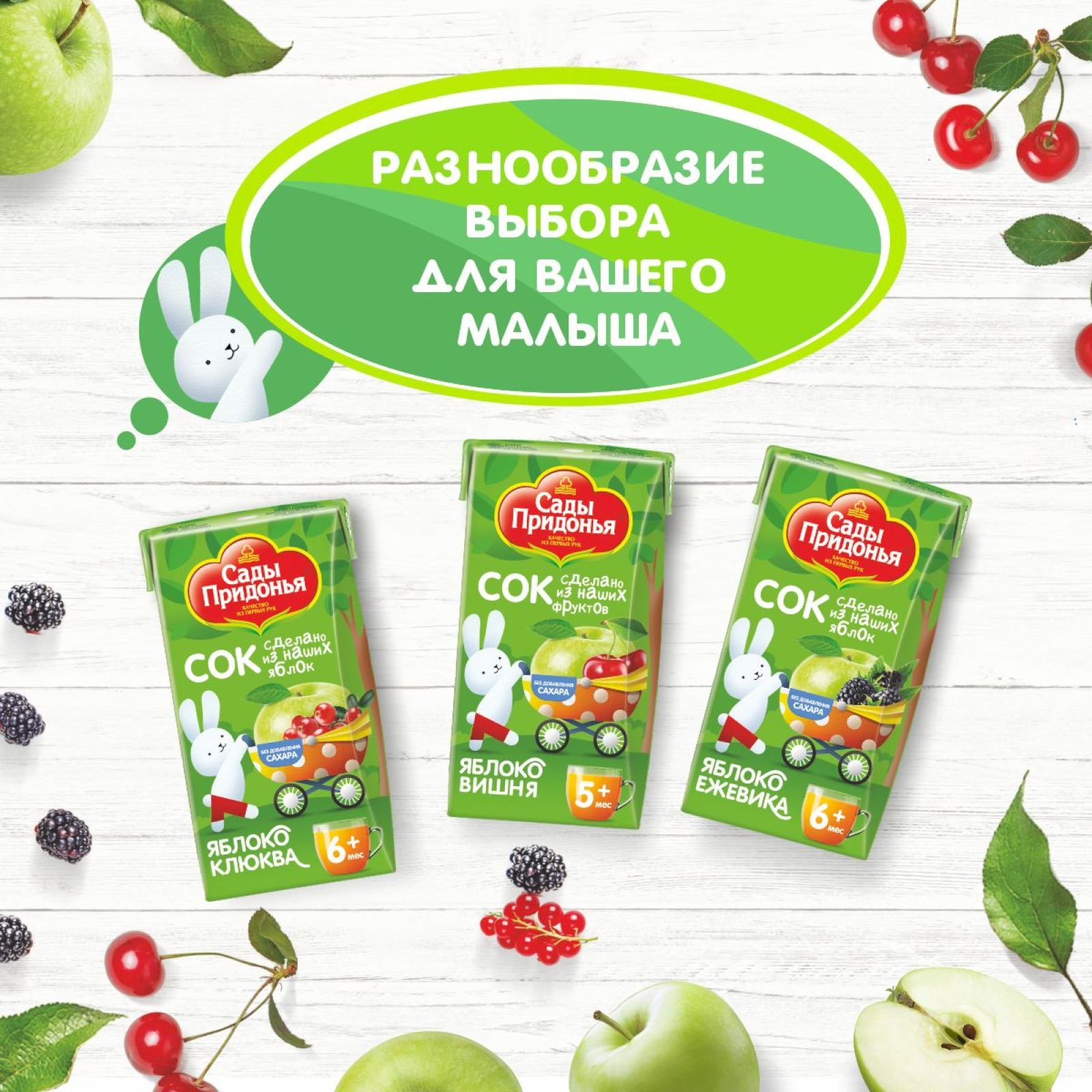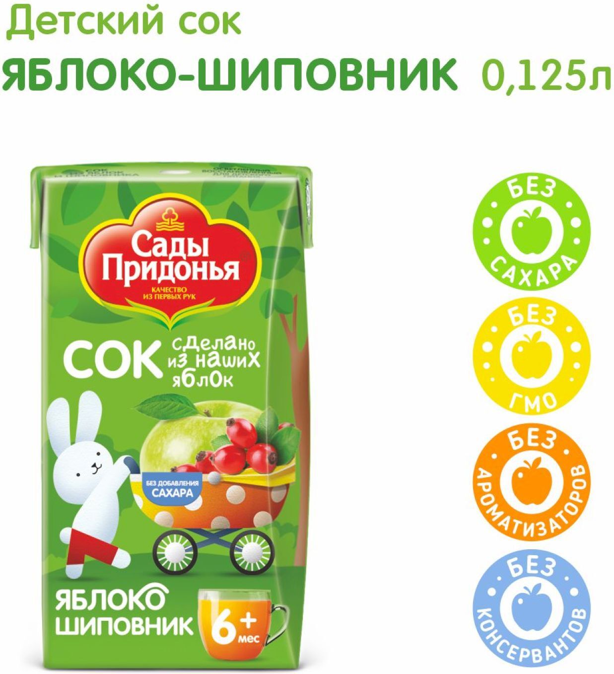 Сок детский осветленный восстановленный Сады Придонья, из яблок и шиповника, 0,125 л х 18