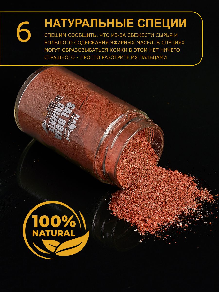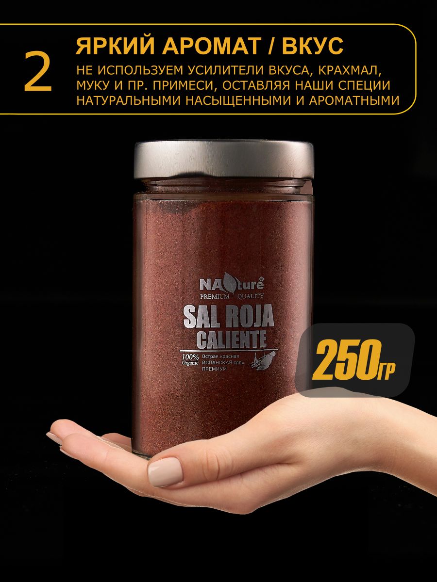 Описание: Соль Испанская острая красная Sal roja caliente переводится как острая красная соль, происхождением из солнечной Испании. Смесь от NАture, это морская соль, смешанная с одним из самых острых перцев чили, смягченная нежной копченной паприкой и сбалансированная сладостью апельсиновой цедры. Применяется для приготовления мясных и рыбных блюд, соусов, маринадов и кетчупов. Приправа усиливает аромат мяса и рыбы, добавляет пикантности салатам, а в сочетании с нерафинированным растительным маслом превращает обыкновенный салат в произведение кулинарного искусства. Добавляйте приправу от NАture, экспериментируйте, удивляйте, расширяйте границы кулинарии и открывайте новый мир гастрономических удовольствий. Правильно подобранные приправы и специи заметно улучшают вкус блюда, наполняют его аппетитным ароматом и даже самое привычное кушанье откроется с новой стороны. Расширяйте гастрономические границы, открывайте новое, экспериментируете и кушайте с удовольствием со специями, приправами и пряностями от NАture.Хранение специи в стеклянной банке это не только очень удобно и практично, но и красиво, она однозначно станет украшением на кухне и праздничного стола. Баночку возможно использовать повторно, для хранения приправы и специи, ведь она сохранит все лучшее и посторонние запахи не испортят находящийся внутри продукт.