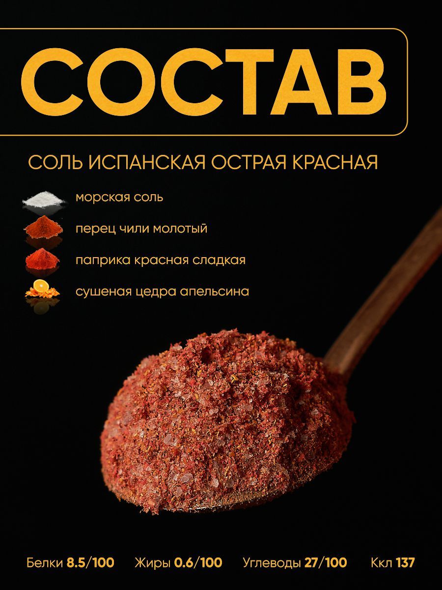 Морская соль перец чили молотый, паприка красная сладкая, сушеная цедра апельсина