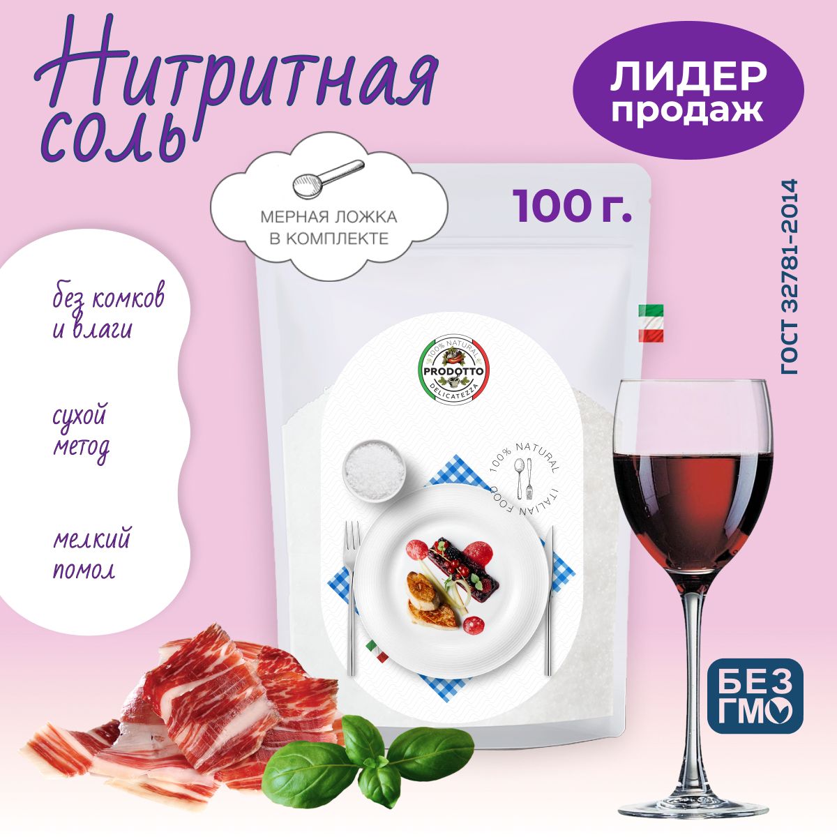 Соль нитритная для домашней вареной колбасы мяса, 100 г посолочная смесь нитрита натрия, пищевая добавка и усилитель вкуса продуктов, ветчины, консервант для приготовления и засолки дойпак прозрачный
