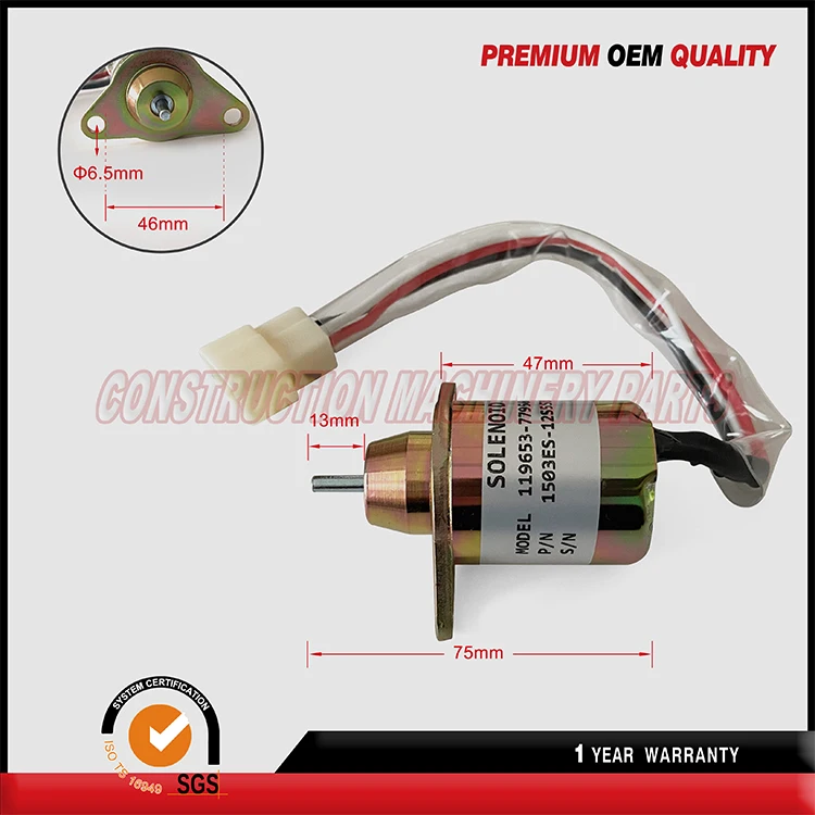 Соленоидный клапан 119653-77950 12 В для двигателя Yanmar 1503ES-12S5SUC5S 119285-77950 SA-4562T SA-5213
