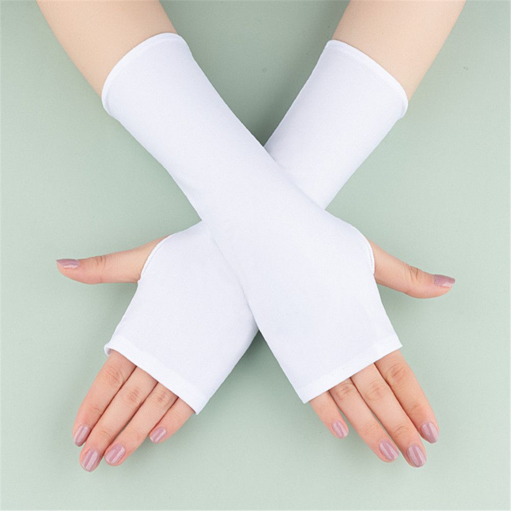 Солнцезащитные длинные перчатки без пальцев для женщин, стильные летние однотонные варежки с полупальцами, черные, белые, телесные, 1 пара