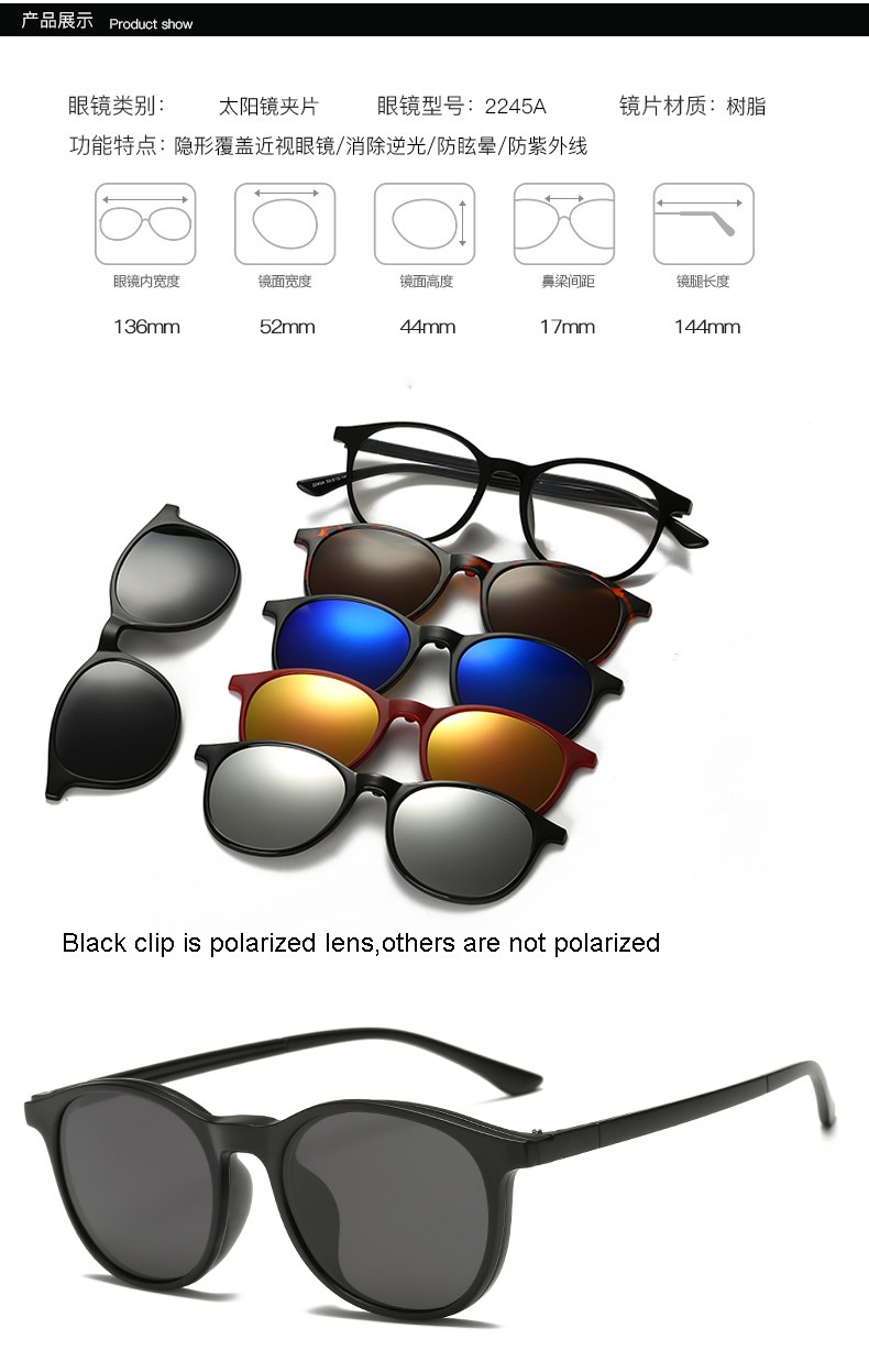 5 Lenes магнитные солнцезащитные очки с клипсой Polaroid зеркальные магнитные солнцезащитные очки на клипсах мужские поляризованные очки по рецепту близорукости