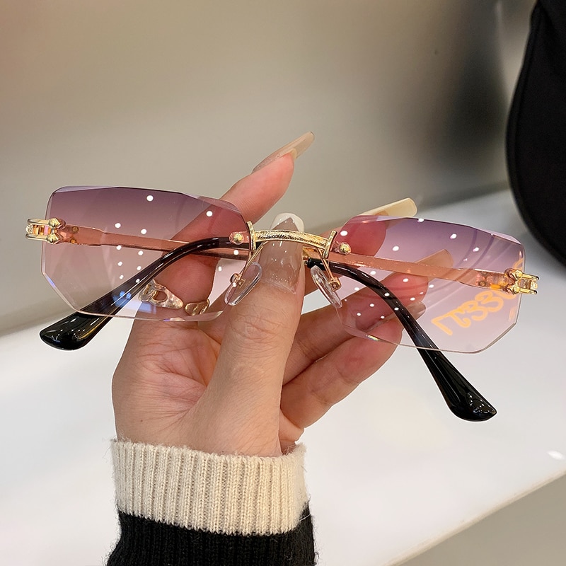 Солнцезащитные очки без оправы унисекс, маленькие модные градиентные солнечные очки в стиле ретро, роскошные брендовые дизайнерские, для путешествий
