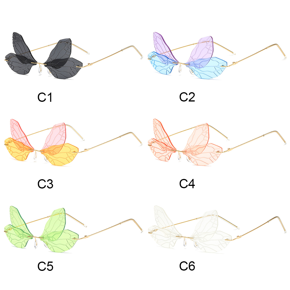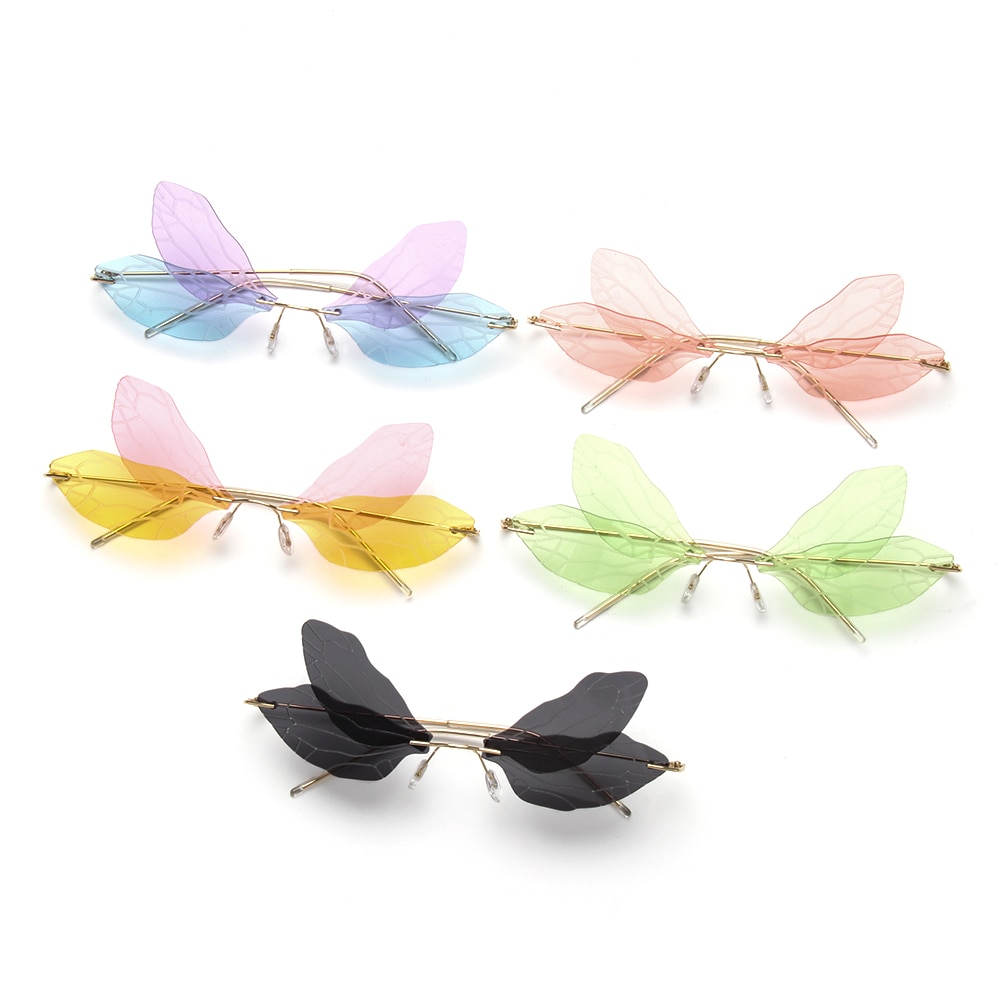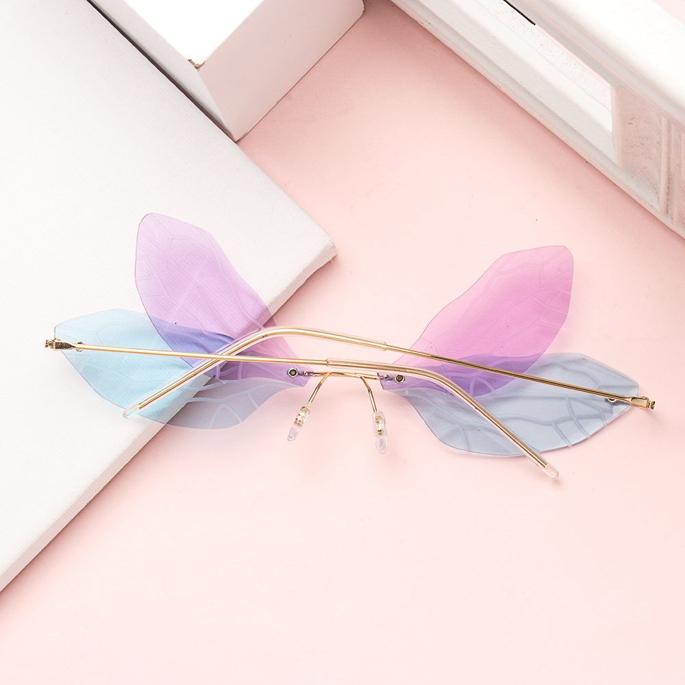 Солнцезащитные очки без оправы UV400, винтажные брендовые дизайнерские Роскошные солнечные очки с прозрачными градиентными линзами со стрекозой и крыльями океана, 1 шт.