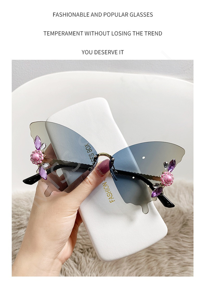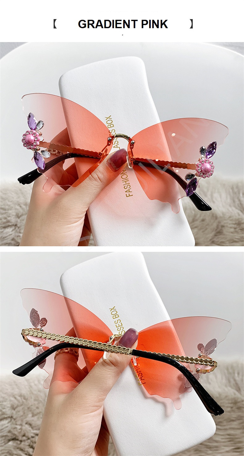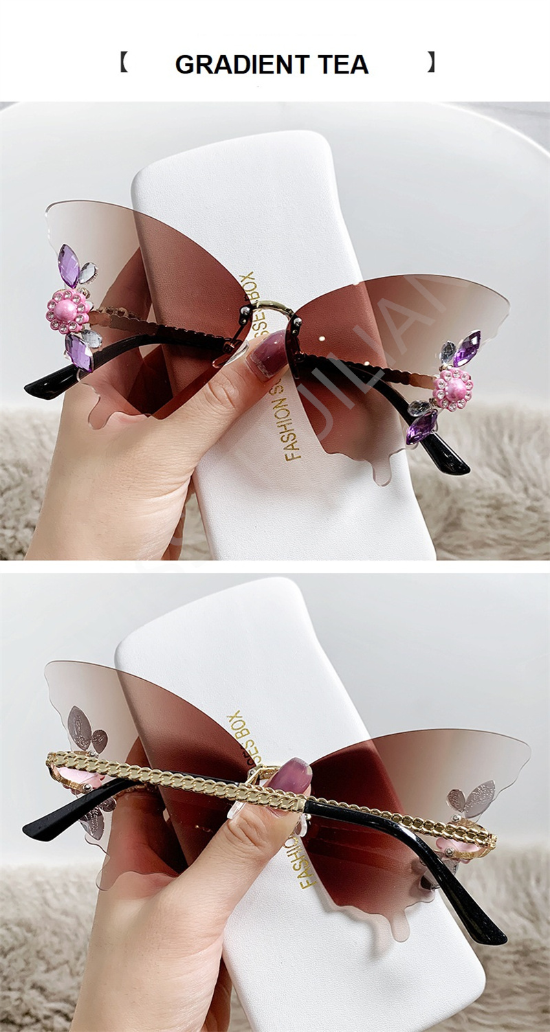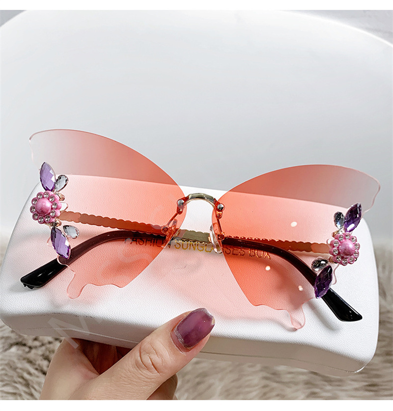 Солнцезащитные очки без оправы женские, роскошные дизайнерские винтажные брендовые солнечные очки с бабочкой и кристаллами, без оправы