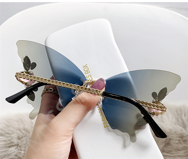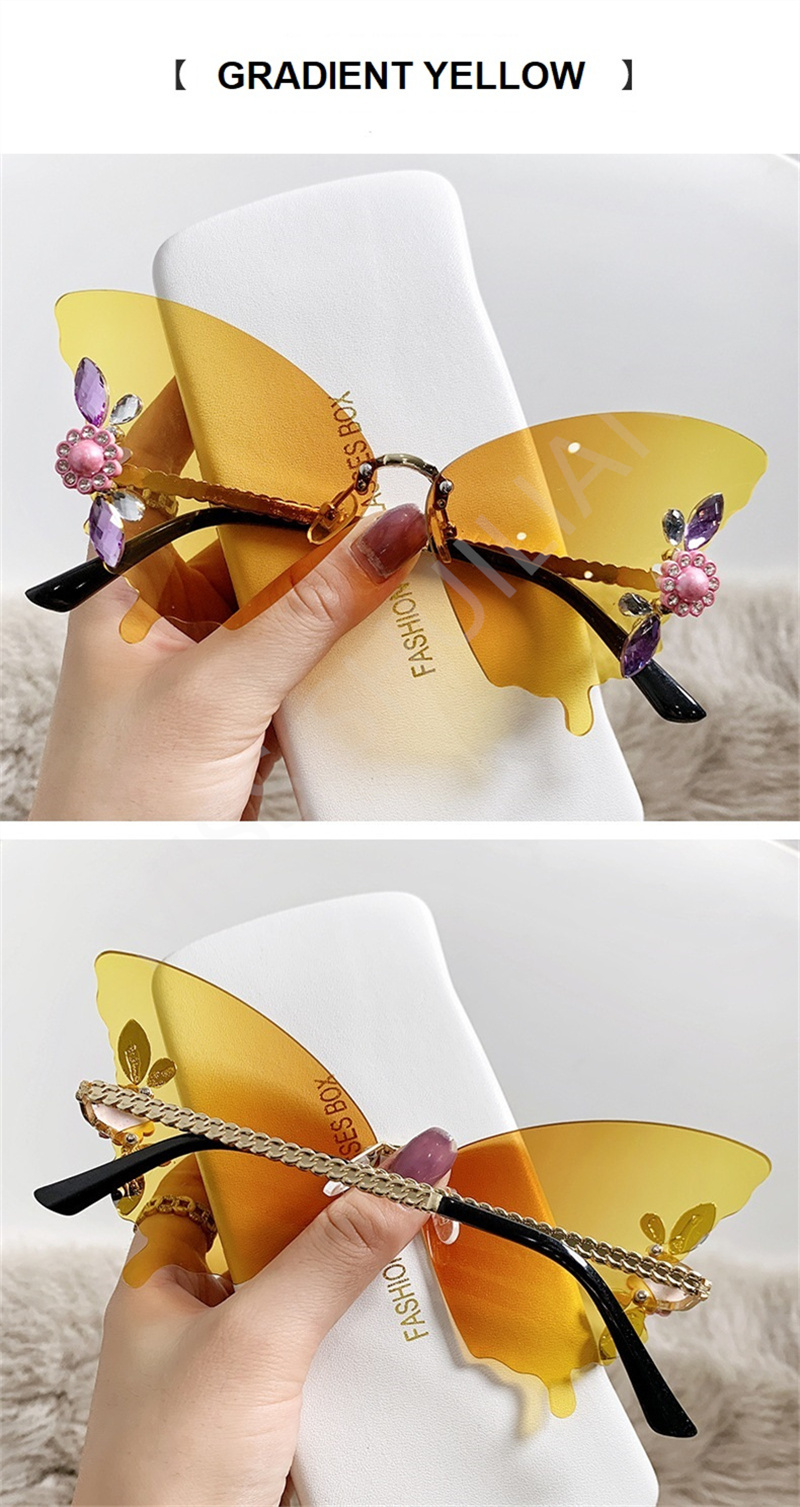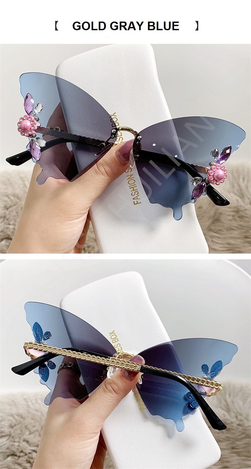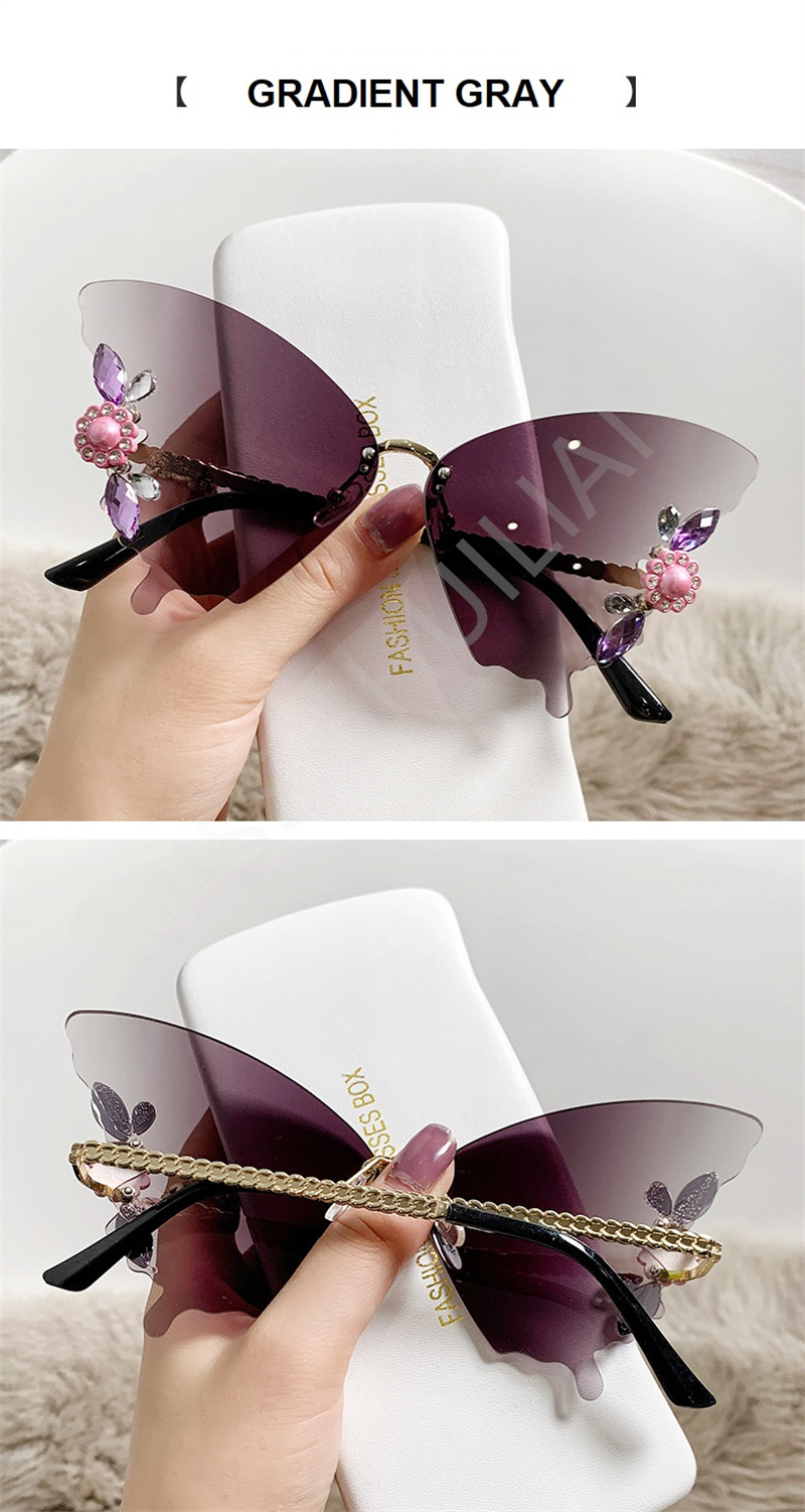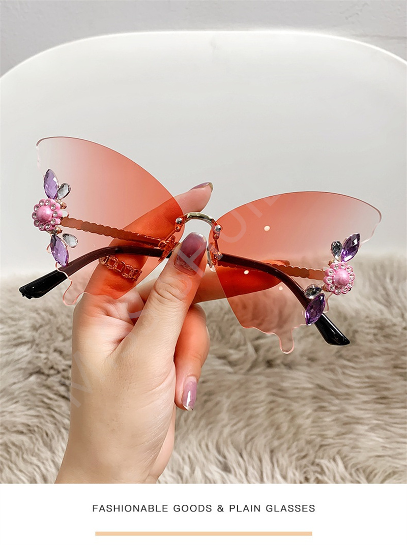 Солнцезащитные очки без оправы женские, роскошные дизайнерские винтажные брендовые солнечные очки с бабочкой и кристаллами, без оправы