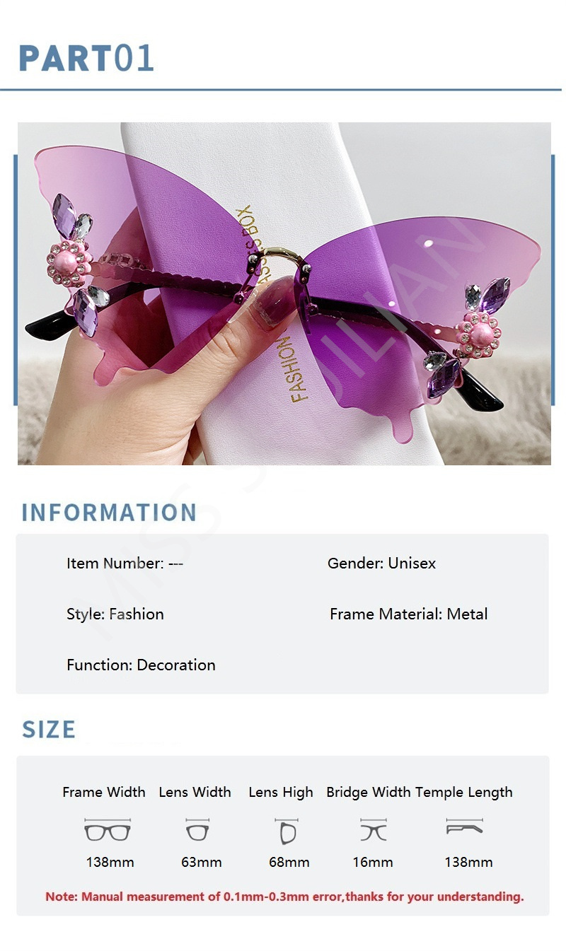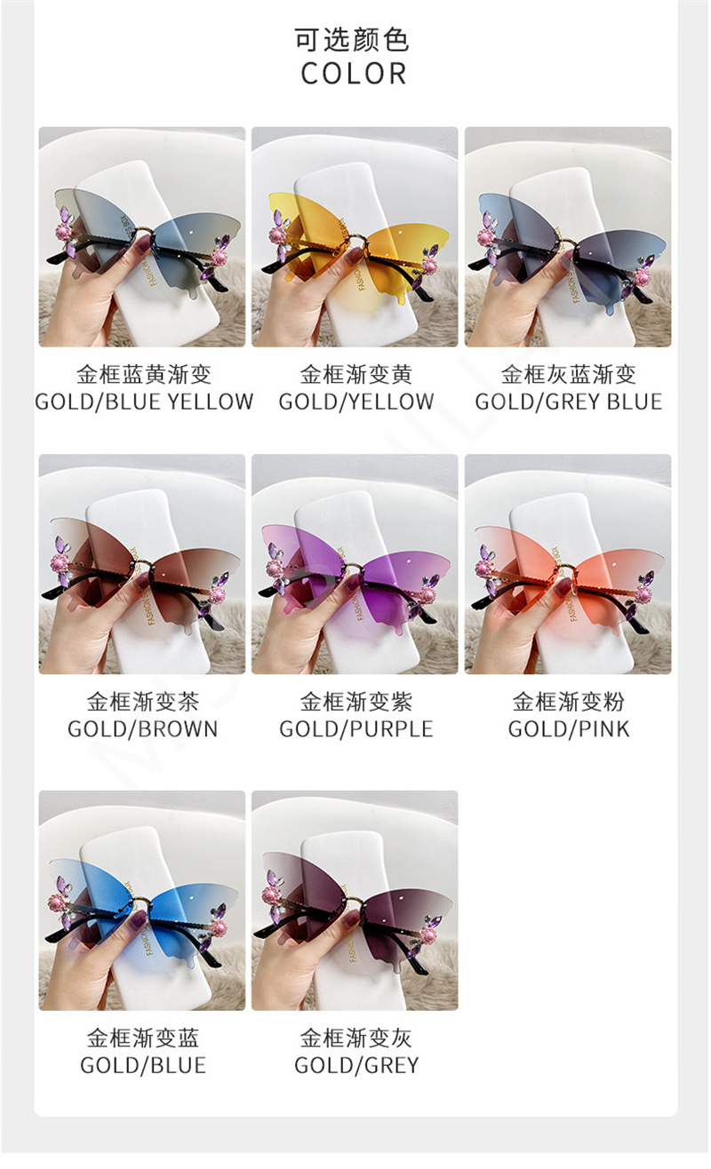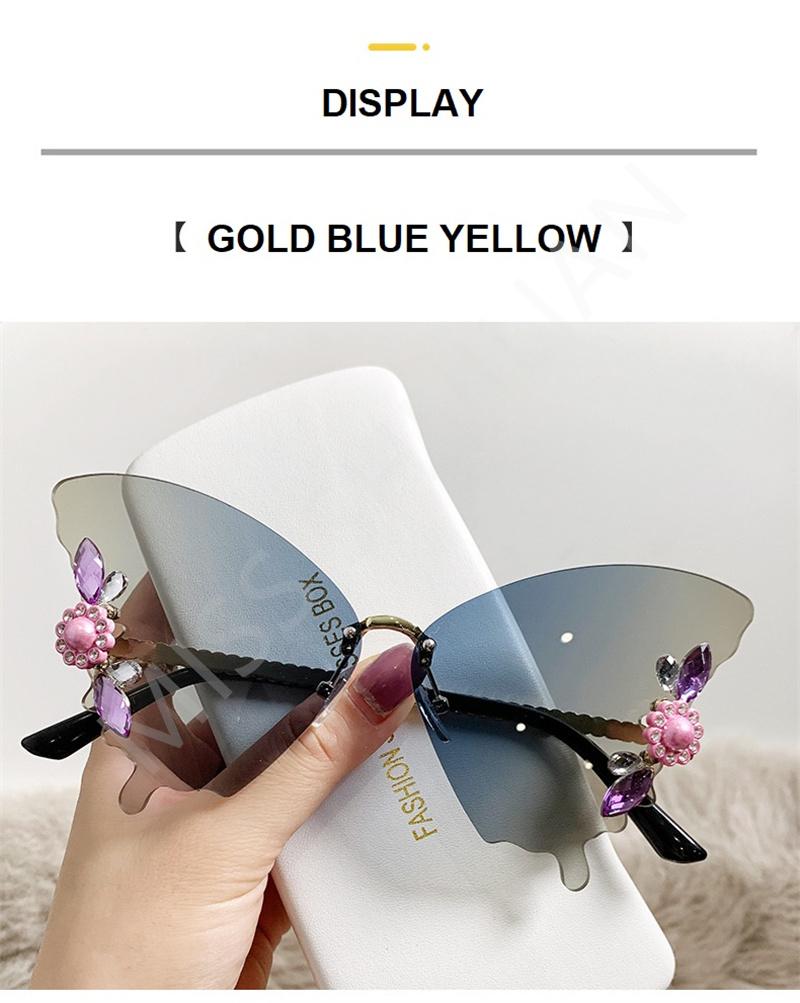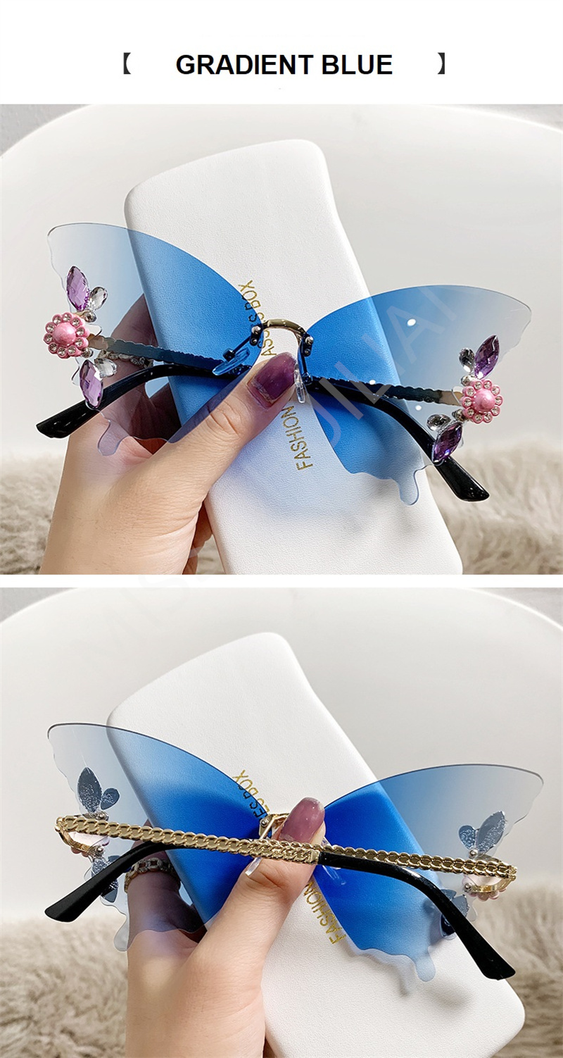 Солнцезащитные очки без оправы женские, роскошные дизайнерские винтажные брендовые солнечные очки с бабочкой и кристаллами, без оправы