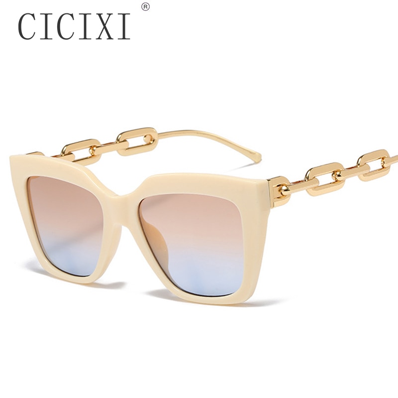 Солнцезащитные очки CICIXI в металлической оправе UV400 для мужчин и женщин, Модные Винтажные дизайнерские солнечные аксессуары с цепочкой и линзами зеленого цвета