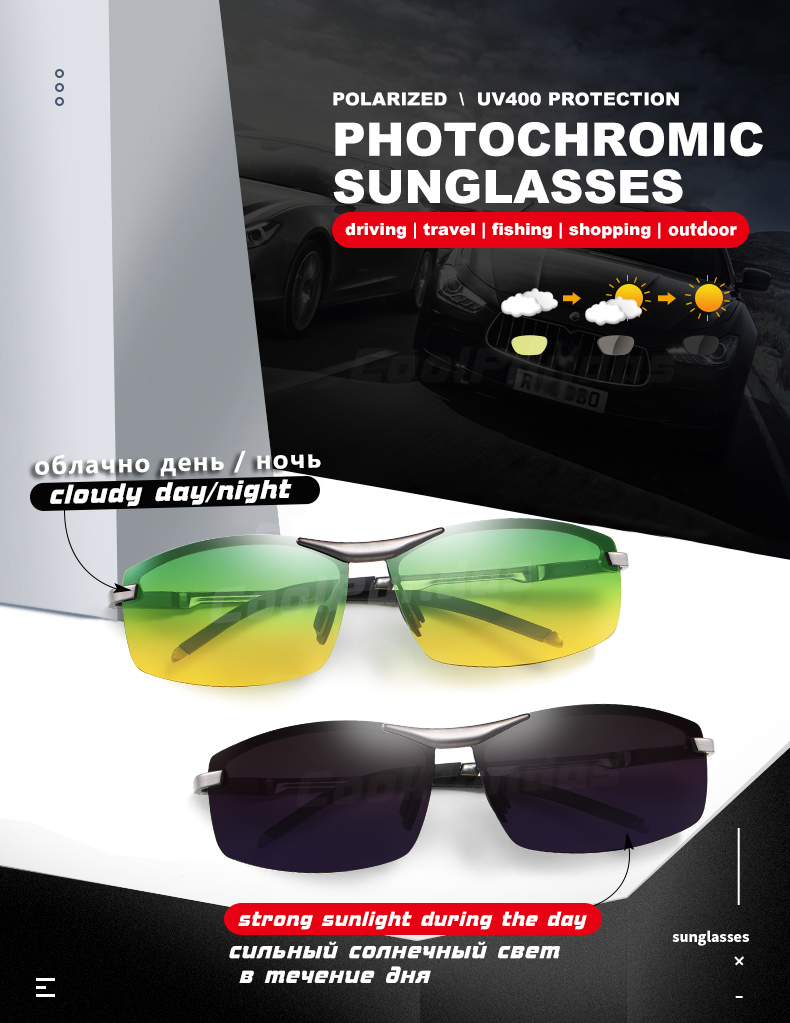 Солнцезащитные очки CoolPandas 2022 мужские фотохромные, поляризационные, хамелеоны, дневное и ночное видение, для вождения, UV400