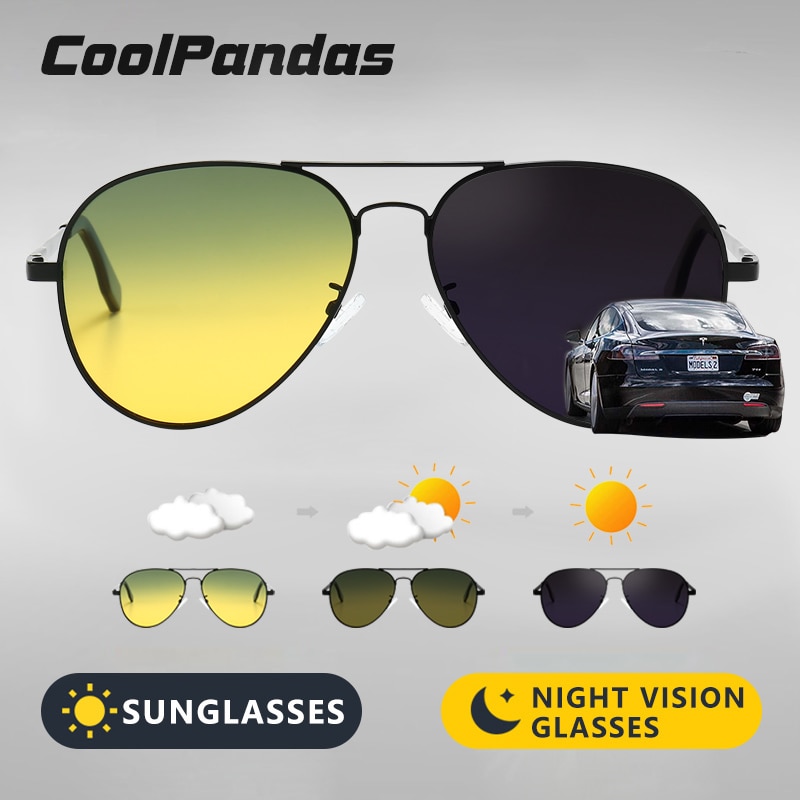 Солнцезащитные очки CoolPandas 2023 для мужчин и женщин, Поляризационные солнечные фотохромные очки с градиентными линзами UV400, дневное и ночное видение, для вождения