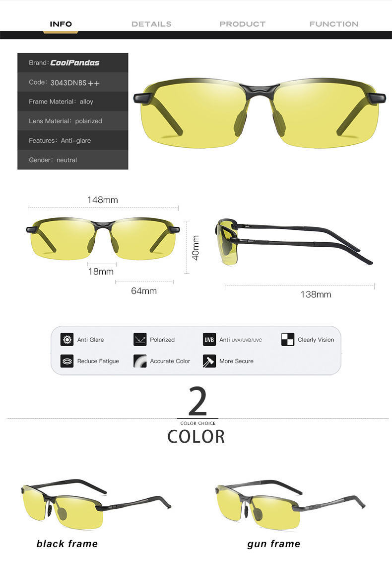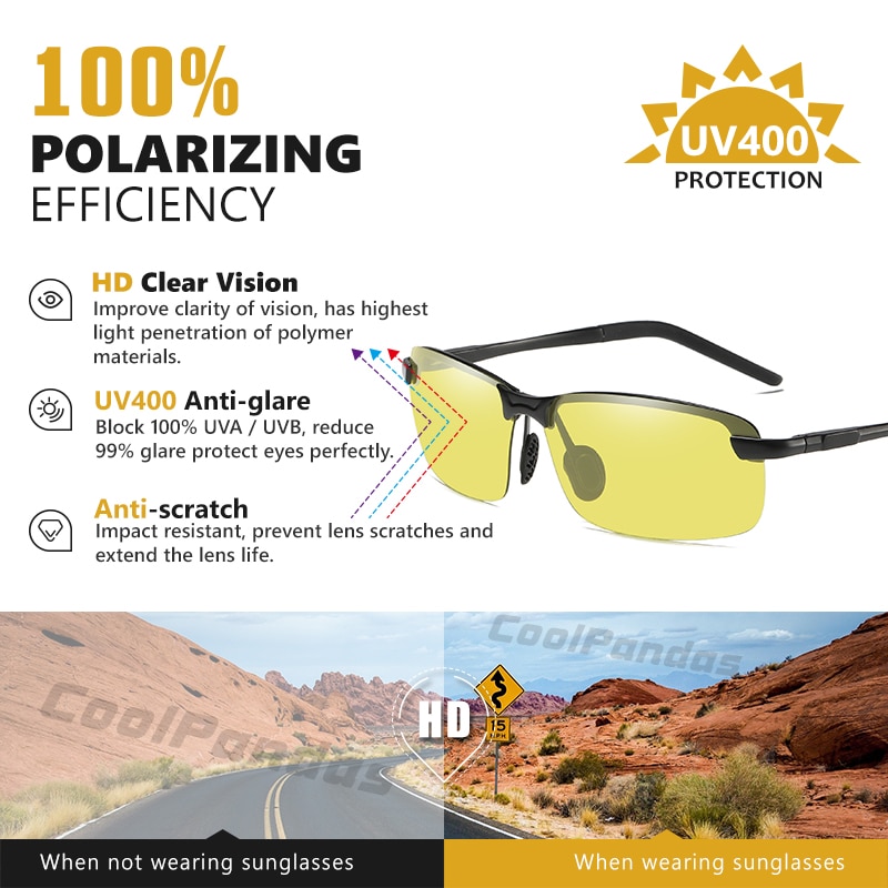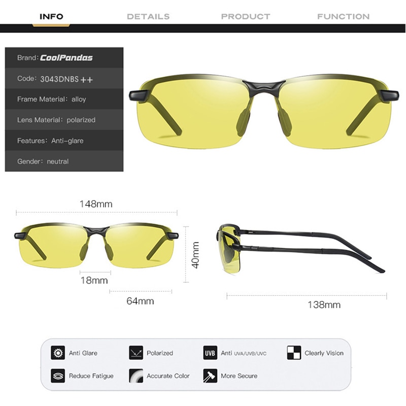 Солнцезащитные очки CoolPandas квадратные для мужчин и женщин, поляризационные фотохромные очки для вождения ночью, антибликовые